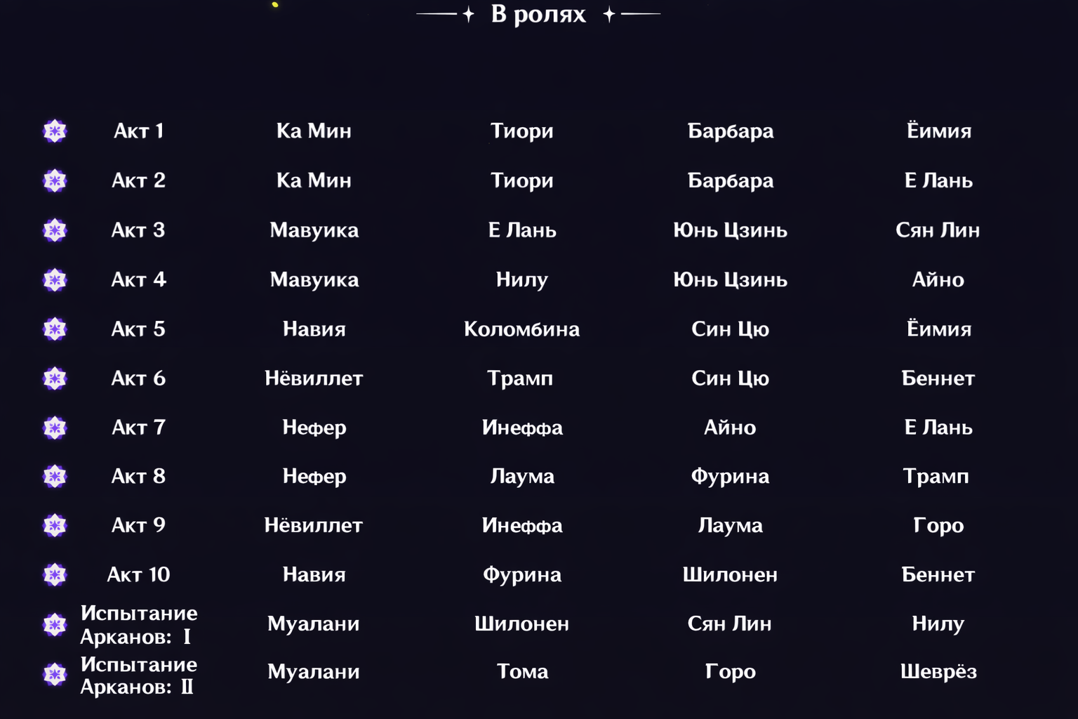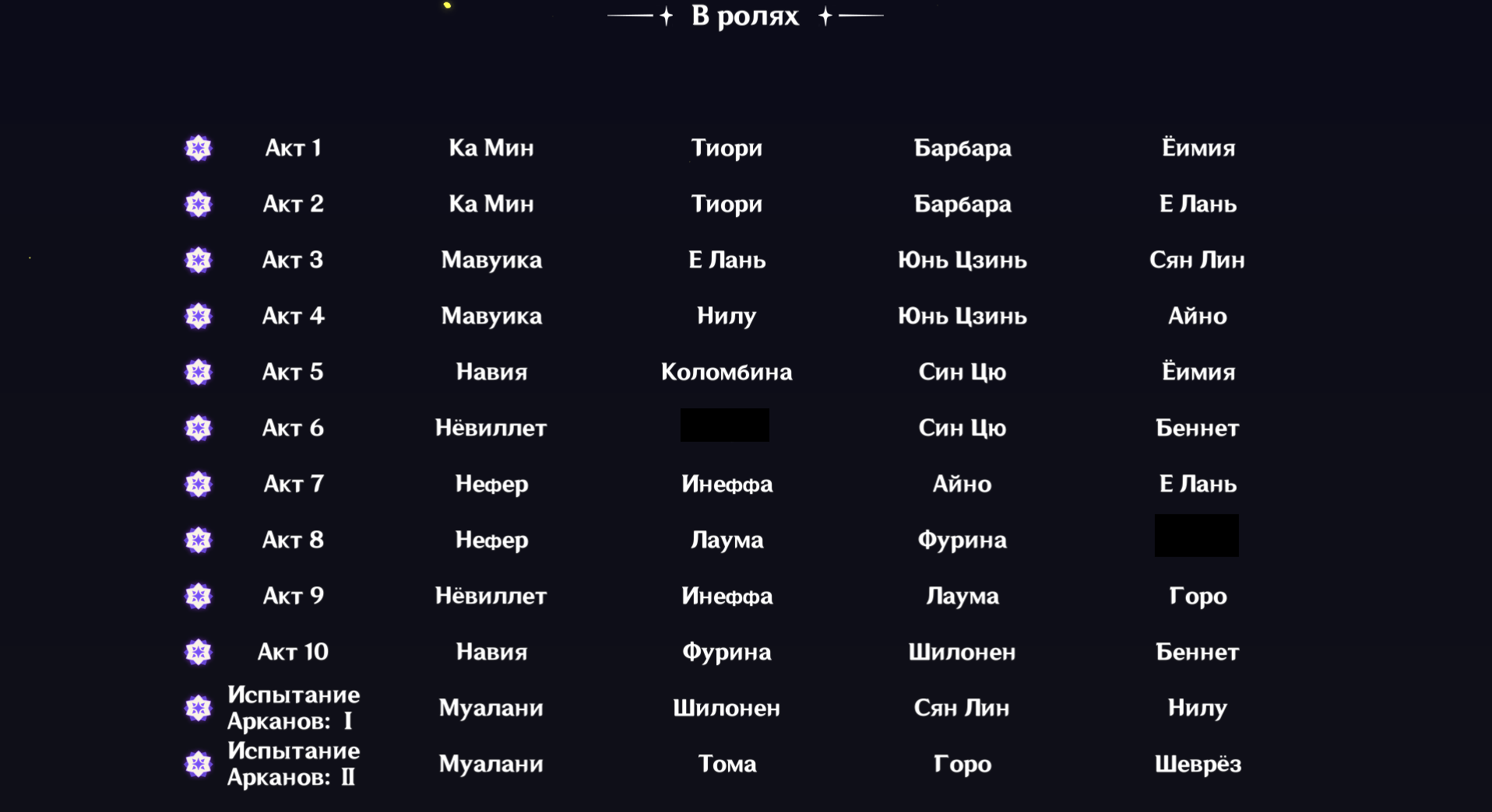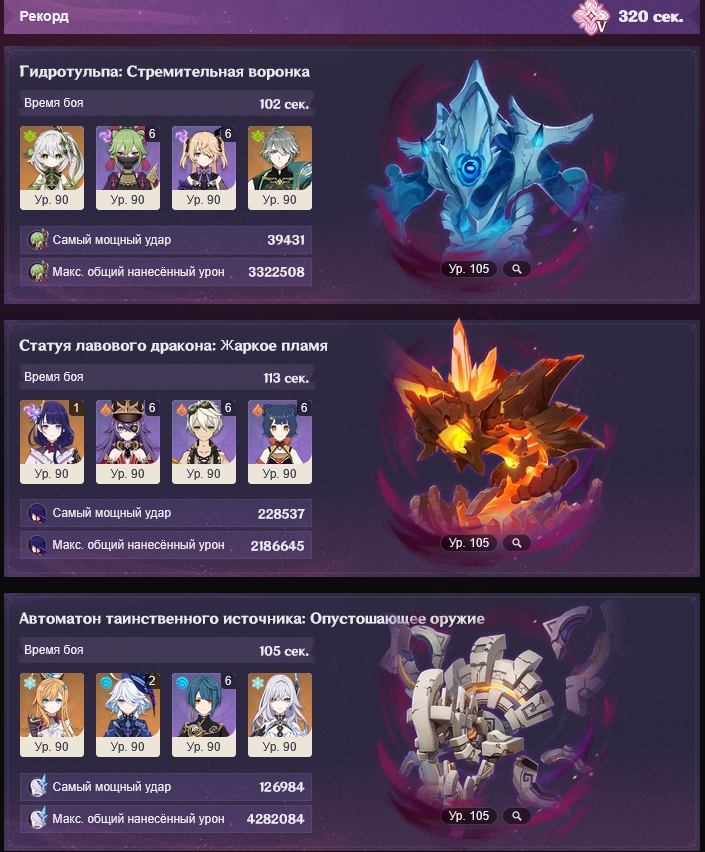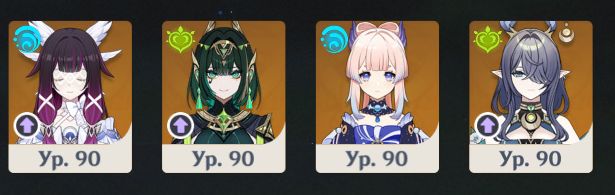Это 2 слота, третий допустим идет под Айно. Остается 1 свободный для хила или щитов. Но у меня только Ноэль, Барбара, Куки и Яо Яо из хила. Еще забран какой то гидро китайчонок с ивента, его тут советовали как мастхев.