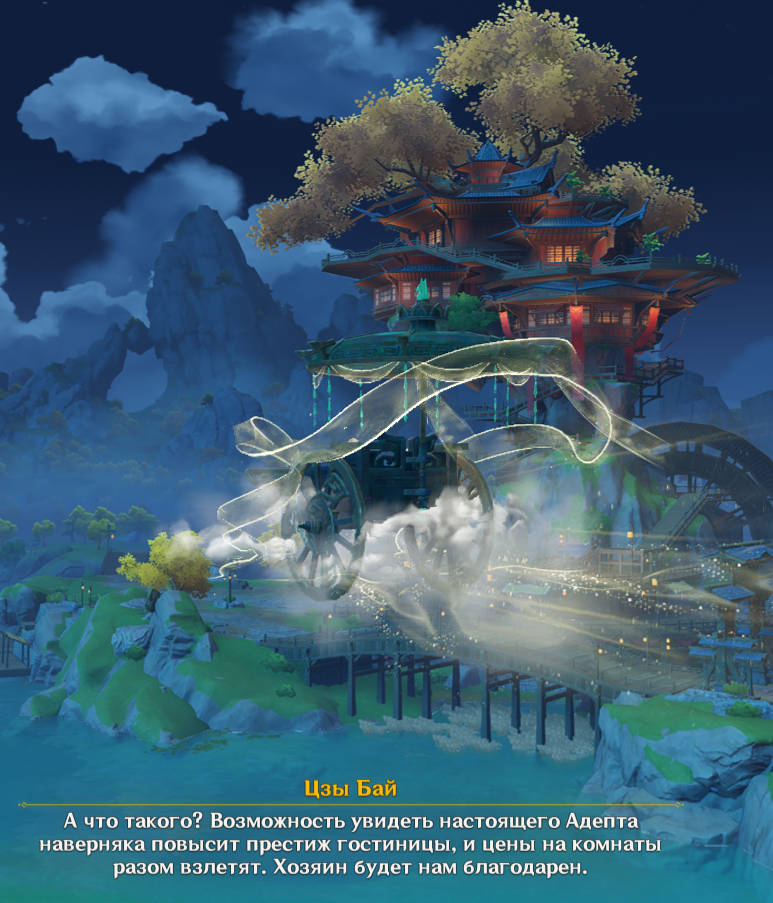 Я вот реально не понимаю. То есть они же вроде скрывают личность Цзи Бай, типа она актёр, косплеер и вообще не настоящий адепт... А никого не парит, что она просто над населёнными пунктами на своей чудо-карете летает, бля? Такой хуйни даже у Нин Гуан нет, а тут косплеер из колесницы выходит, заходит, потом летает на ней. Никаких вопросиков у людей не возникает случаем?