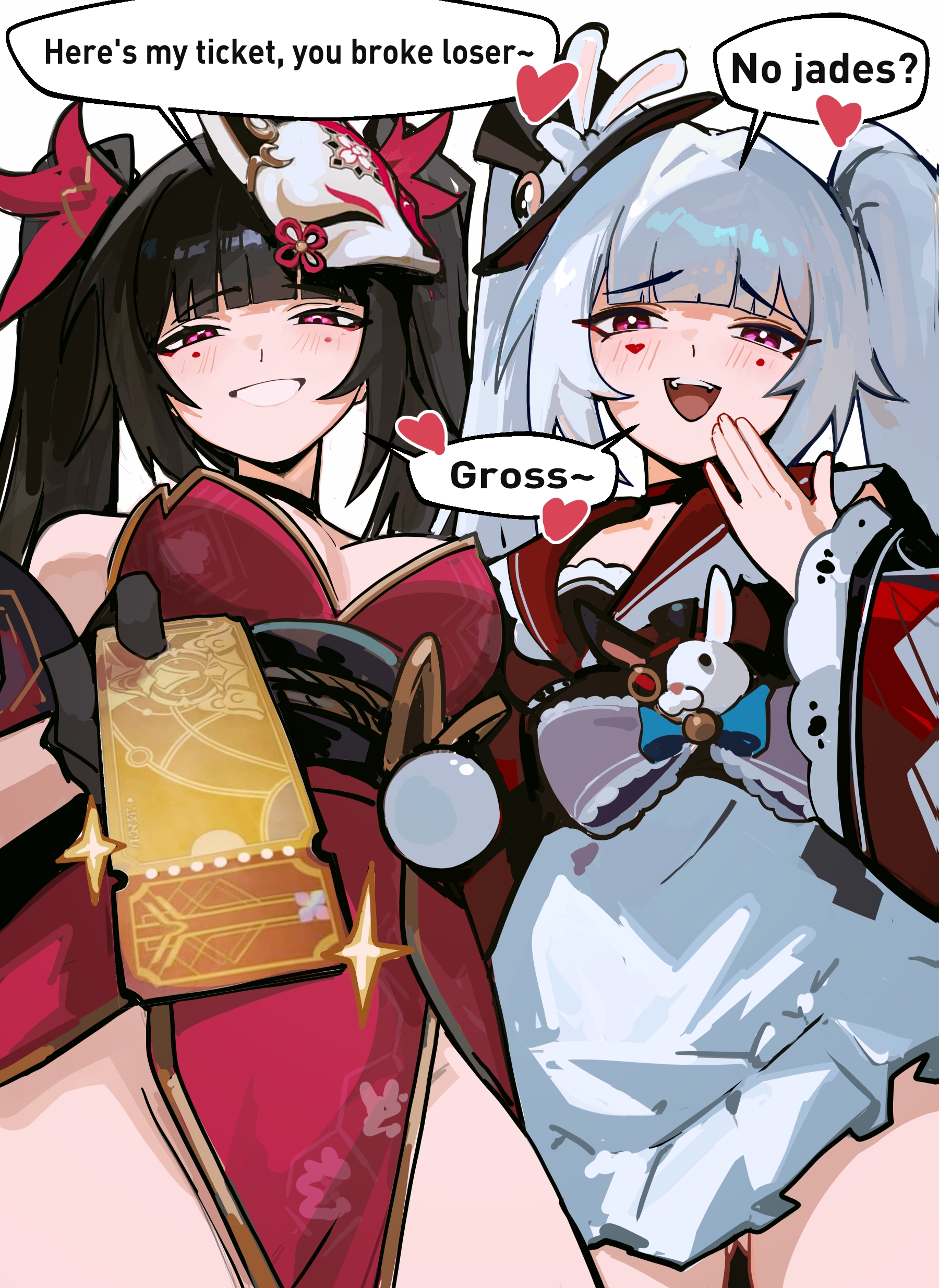 Жуань Мэй баффает Искорку: "Временный альянс?" Искорка: "Ха, нет!" — телепорт и удар по Жуань Мэй.