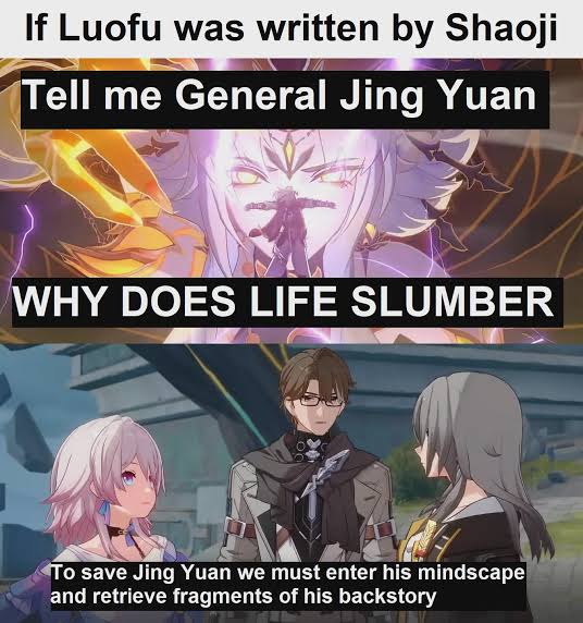 Герта из нового аватара: "Анализ завершен. Уничтожить аномалии." Куклы рвут Цзин Юаня — молнии гаснут, он падает.