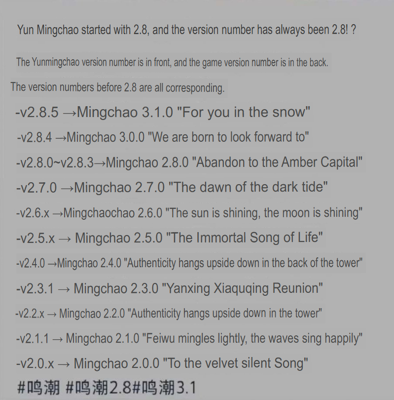 >>6386970 Ну что типа до 2.8 версия игры совпадала с версией патча. А после этого версия игры стала теперь разбиваться на 3 цифры, а не две, и с 2.8.0 по 2.8.3 это все еще относится к 2.8, 2.8.4 это 3.0, а 2.8.5 это 3.1. На самом деле это скорее всего просто технические спецификации и всем должно быть похуй, но наше подмечательство не остановить!