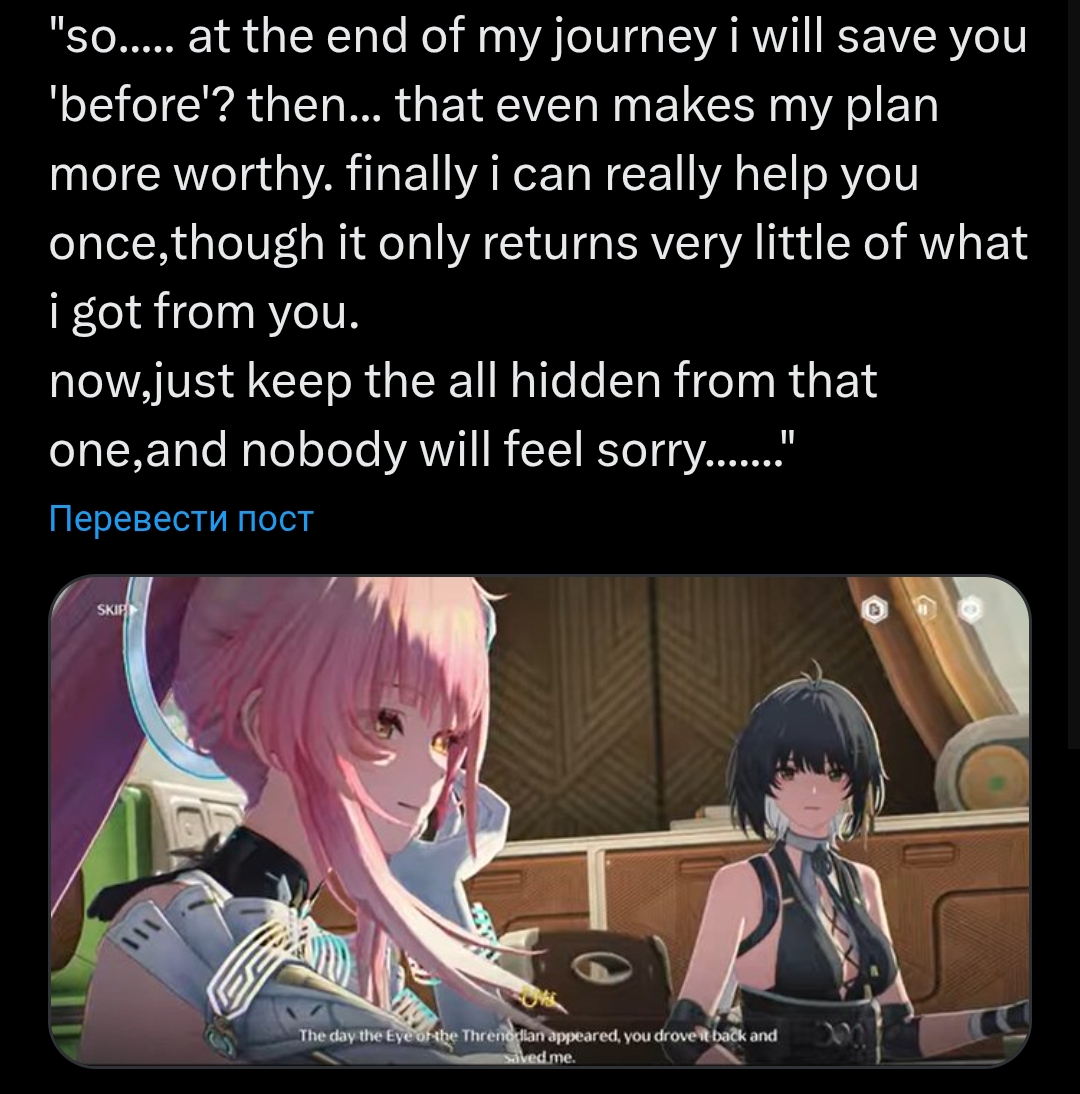 >>6386777 Вчера вроде выдвигали эту теорию. Что типа та реплика кристофоро в конце 3.0 про "girl forming a bond with Threnodian" это было не про розовушку, а про чипсека.