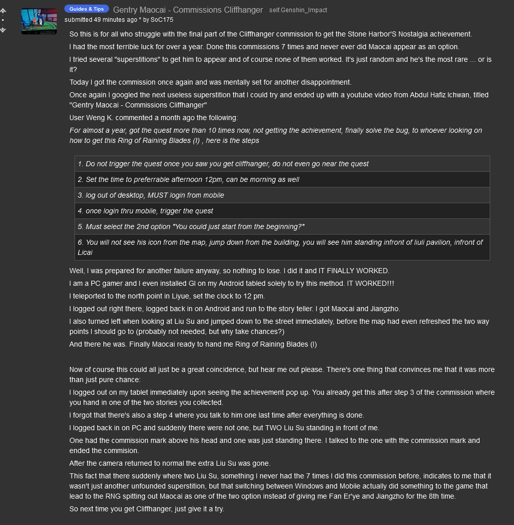 >Характер - говно из-за дикой самоуверенности >Сюжет - говно из-за мерисьюшности >Ну и самое главное - паверкрип всего Абсолютный сейм. Мопед с насраном окончательно убили старый геншин. Теперь это парашная гавниша, апофигей безвкусицы, похуизма и нещадной дойки.