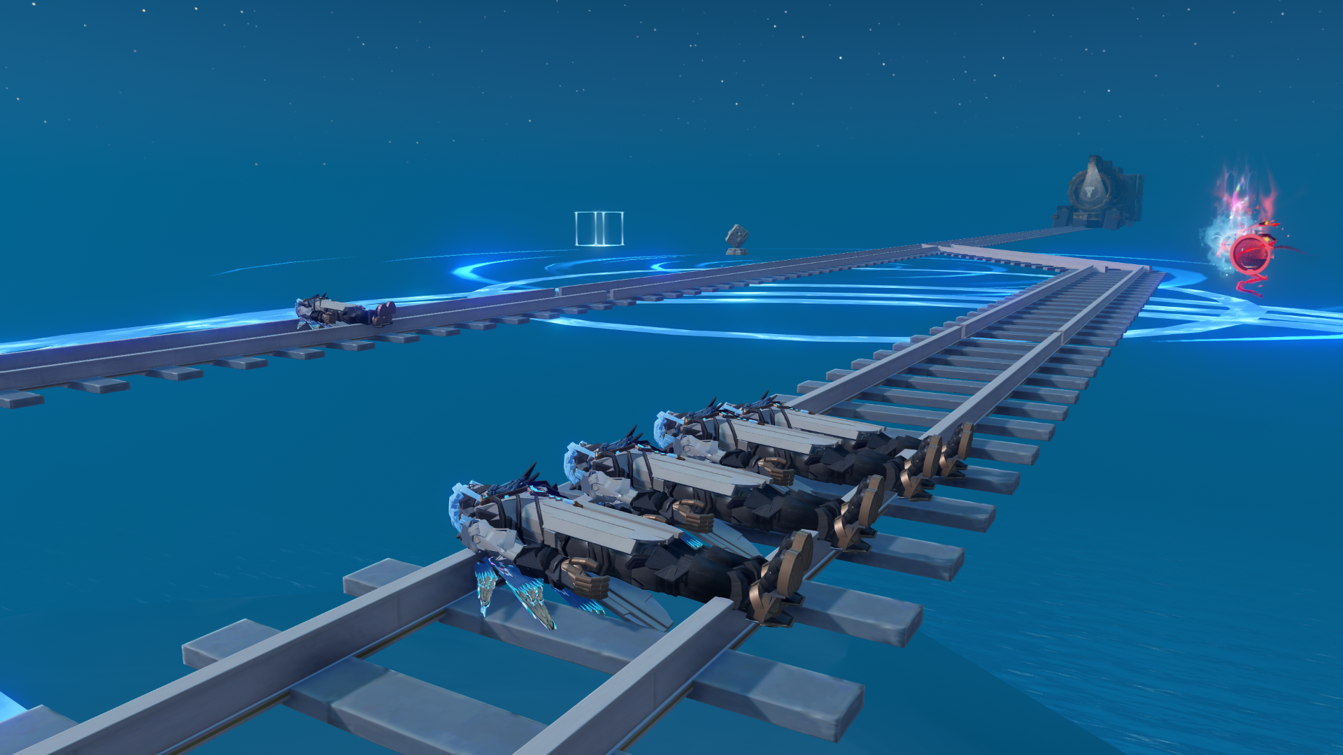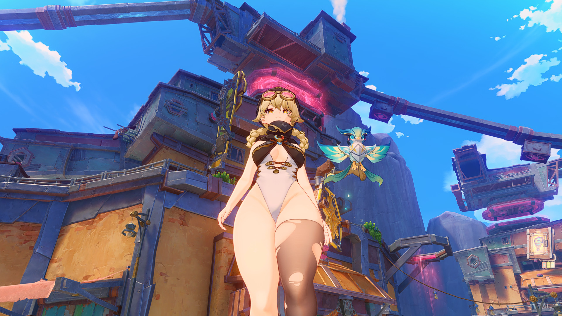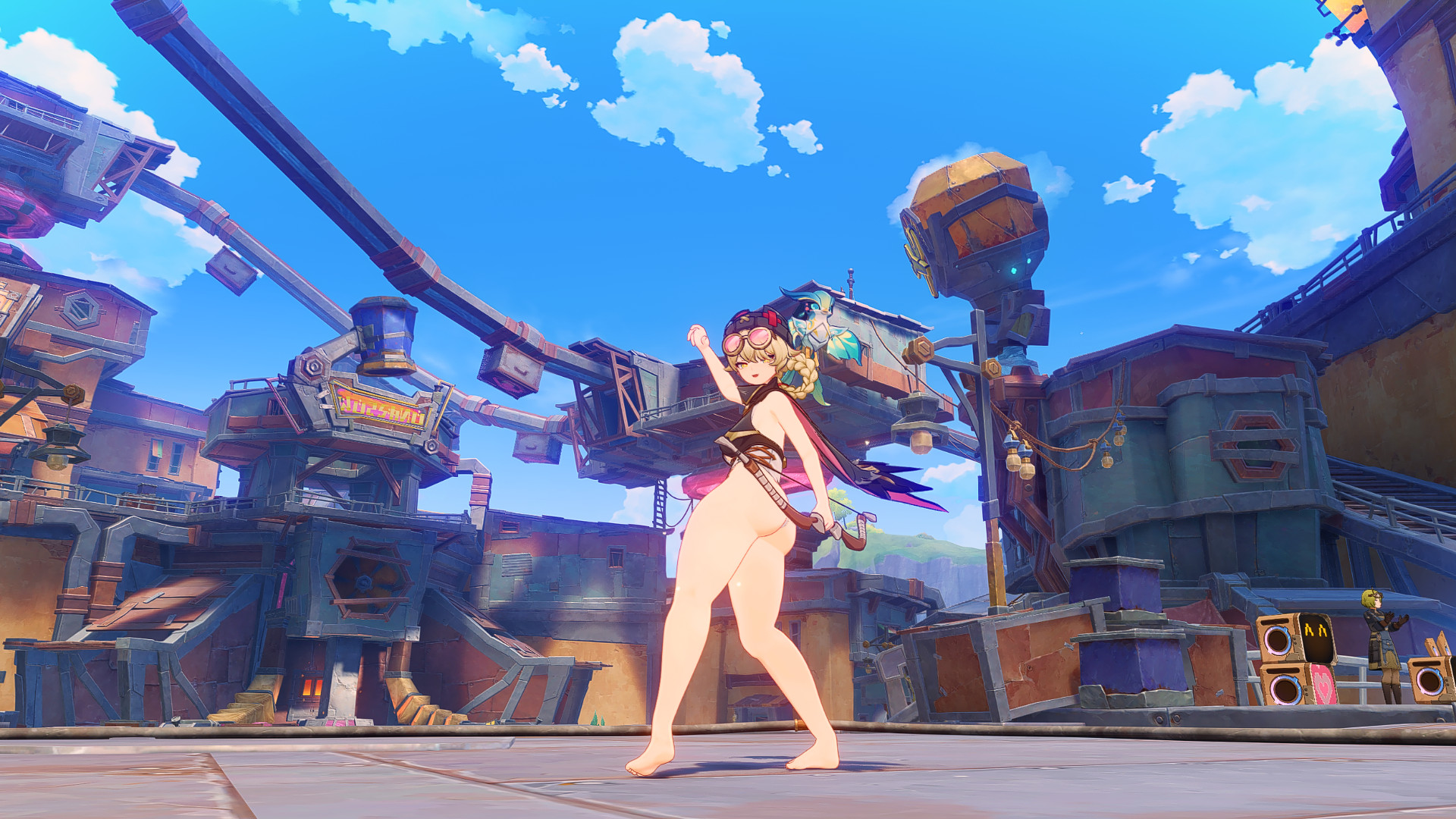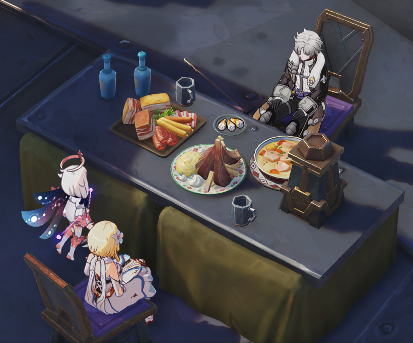 Игра с освещением в этой локации реально великолепна, я что-то даже удивился, вроде на Unity сидим, а графон прямо завораживает. Не знаю, кто спецэффектами в MiHoyo занимается, но вот тут прямо идеальная гамма оранжевого на закатах, сразу торкает в душу и даёт ассоциации о каком-то летнем лагере, 21:00, свободный час до отбоя, можно посоциализироваться немного, всякая запоминающаяся ерунда или драки обычно после 21 и были, поварихи мне остатки крендельков отдавали, такой "час событий". Или когда шашлыки на природе у побережья подходят к остатку, все уже весёлые и поют. Прямо идеальные виды, да и ночью эта локация невообразимо красивая, атмосфера ночных прогулок в три утра. Если бы какая-то кастомка на основе этого пляжа была, можно было бы сделать симулятор (ко-оп) попойки в три ночи после тусовки, аля "Мальчишник в Вегасе" или квеста в Скайриме, где нужно было накидаться с магом-даэдрой.