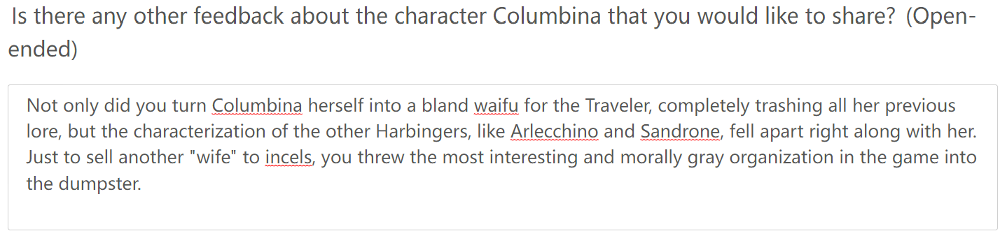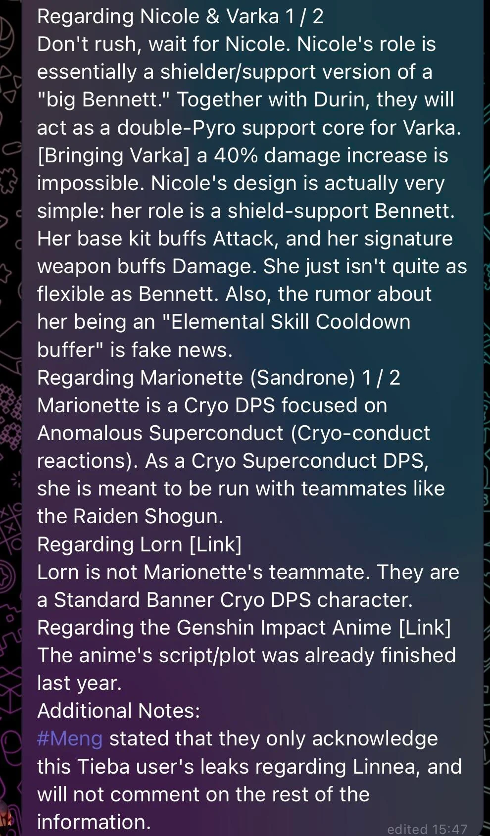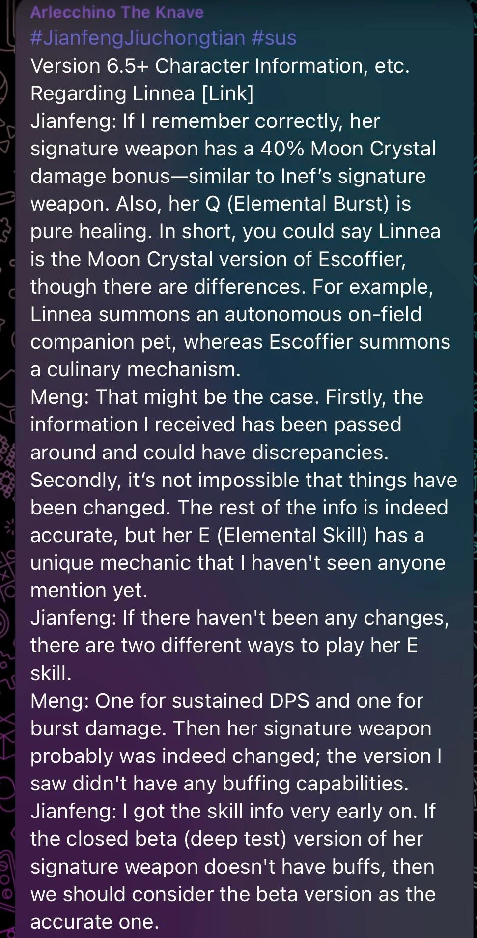 так то я сыглы оформлю высираются плоские персонажи пустышки одна сплошная скука притом что с той же клумбой можно было кучу всего сделать, но вместо этого очередная каловайфу в регионе которого даже не должно было изначально быть. предвестников дак вообще тупо в ноль слили, китайцы будто те демоны из фрирен, слова знают но смысла не разумеют, чисто нейросетки которые брутфорсом ищут как ништяки залутать