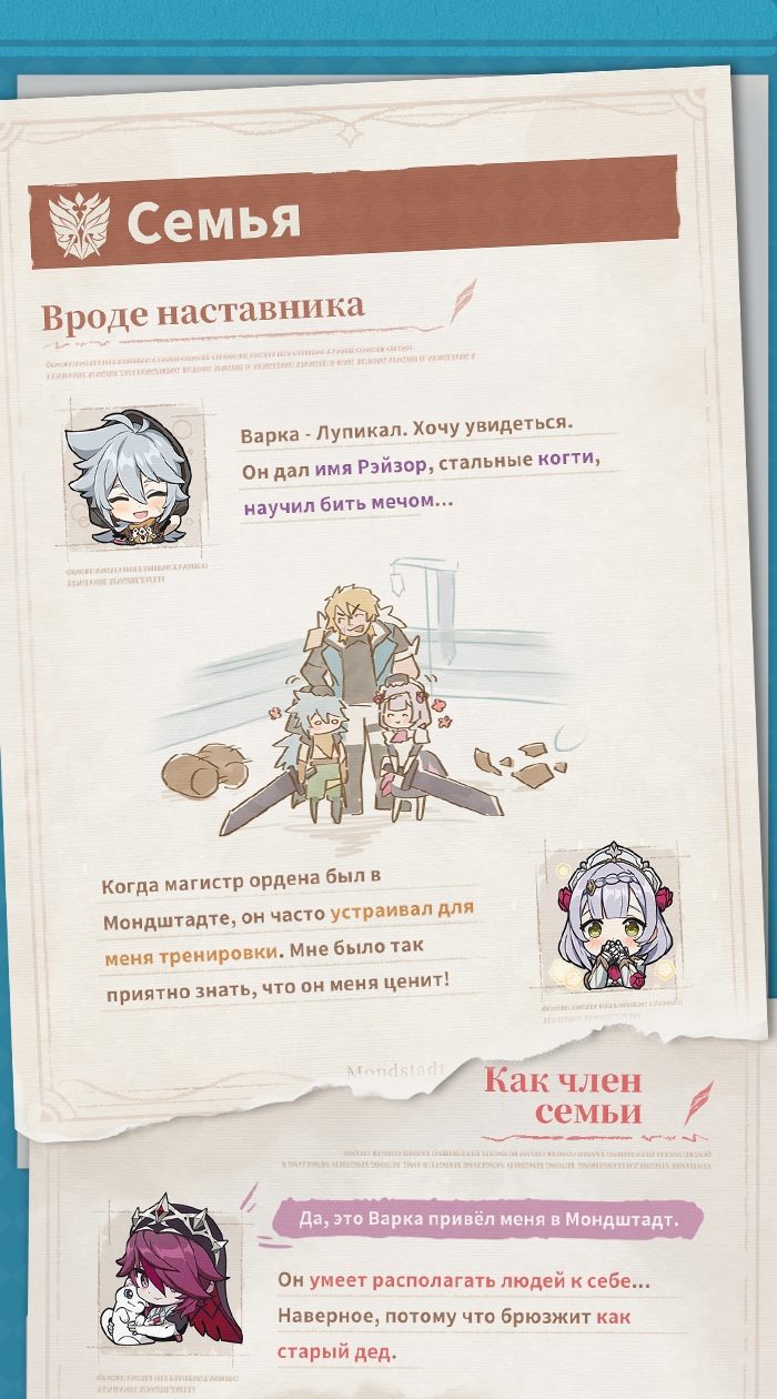 >>6457745 >Анастасии Фёдоровне Снежной А давно известно что Снежная так названа в честь своего архонта? А то я ждал от нее сугробов и снежных вьюг, а в этом сюжетном повороте уже прослеживаются какие-то намеки на поворот региона к другому сеттингу. Ну а что, никто же нам не говорил что в стране с таким названием должен быть снег, никакого реткона.