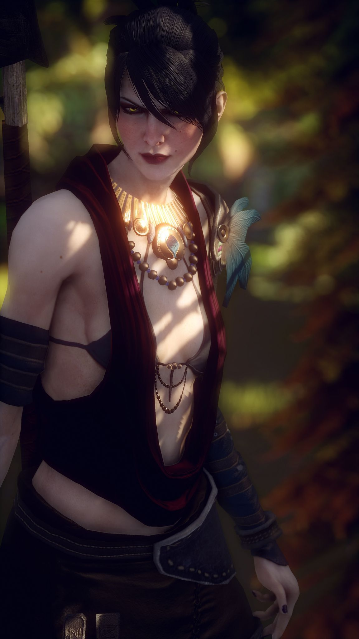 Морриган: И что же ты всё на меня так пялишься, словно я покрыта змеями? Стэн: Змеи были бы очень кстати. Морриган: Так это стыдливость! Очаровательно. А я уж думала – паранойя. Так гораздо лучше. Если уж на меня пялятся, я предпочитаю, чтобы пялились похотливо. Стэн: Тогда продолжай в том же духе. Морриган: В самом деле? Может, мне тогда изобразить что-нибудь соблазнительное? А ты скажешь «холодно» или «горячо». Стэн: Можешь не трудиться. «Холодно». Морриган: (Хихикает) Ты меня дразнишь.