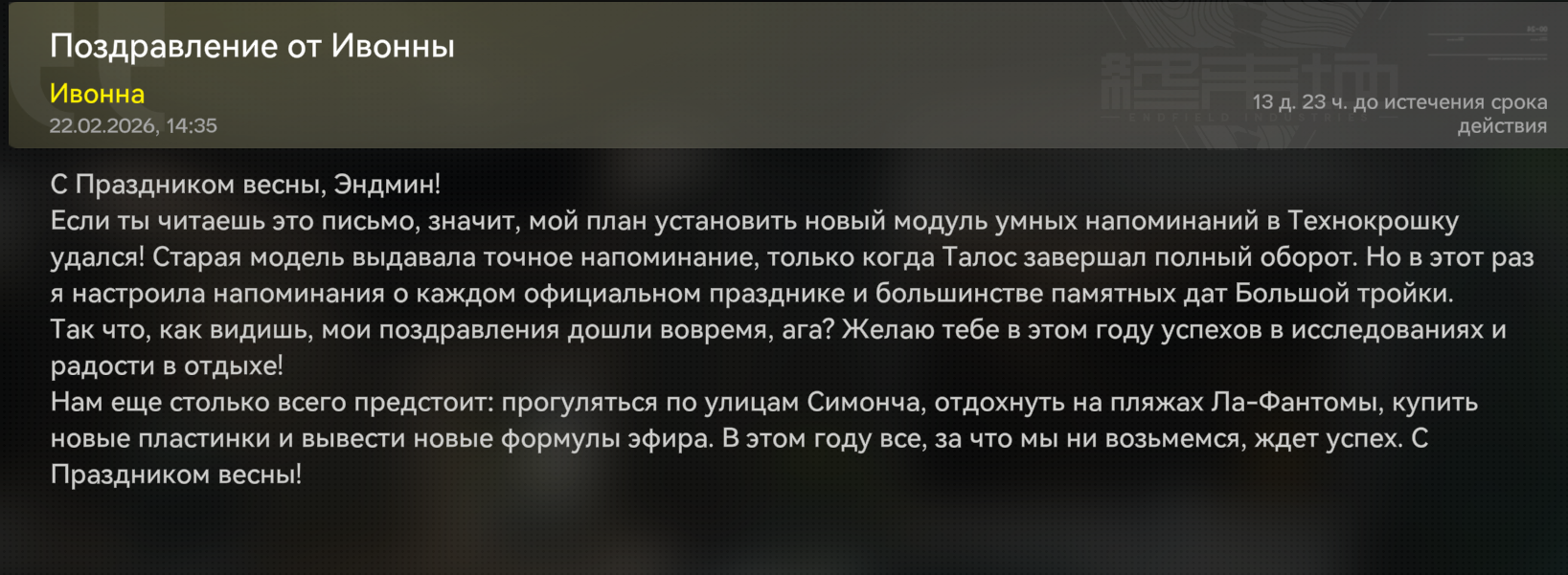@monkey как я буду копить если баннер кончается завтра?? фармь срочно ивенты из шапки, журнал 200 робов, предрелиз 300, ежедневка 260+300, плюс промки ENDFIELDGIFT и ENDFIELD4PC на пк кинь. pity мягкий, 50-80 пуллов хватит если повезёт, не хватит - копи на реран или следующий s-tier, она никуда не денется. TG/VK чекни за допами.