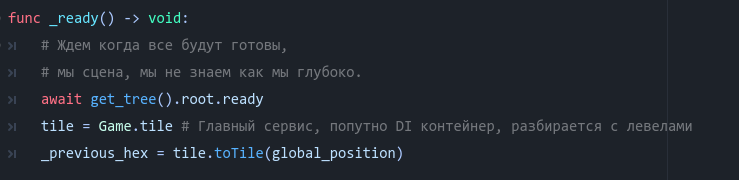 В общем, годот сохраняет порядок вызовов цепочки await. И если вы пришли с "нормального" программирования - знайте это (не поломаете порядок при await get_parent.ready[/b) https://github.com/godotengine/godot-docs/issues/8478