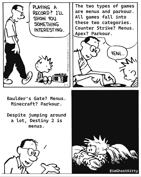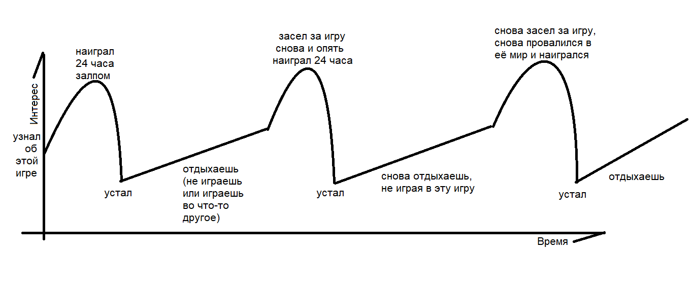 >Но за избыточность фантазии ты платишь иммерсивностью Ты совершенно не понимаешь термин "иммерсивность". Иммерсивность - это не "реалистичность" и никак не связана ни с графикой, ни с физикой, ни с лором игры. Иммерсивность есть даже у того же Тетриса, самого оригинального, из 1984, и у китайских подделок под Тетрис на дешёвом чёрно-белом дисплее, и у ньюфажеского Тетриса по туториалу тоже. Потому что механически Тетрис как игра ТРЕБУЕТ от тебя чёткого внимания, и если ты в него действительно хорошо играешь - ты "погружаешься" в него, то есть твой ментальный фокус срастается с этим клеточным стаканом и фигурками на экране, ты перестаёшь замечать окружающий мир и думаешь только о том, как уложить очередную фигурку в стакан. Другие слова, похожие по смыслу феномена на "погружение"/"иммерсию" - это "транс" и "поток". Т.е. "погружение" - это "состояние сильной сфокусированности на игре". Как достичь этого состояния? Уж точно не "реализмом" графики, физики и лора. Как минимум нужно, чтобы игра требовала от тебя фокусироваться на игре, например, непрерывно угрожая Game Over'ом.