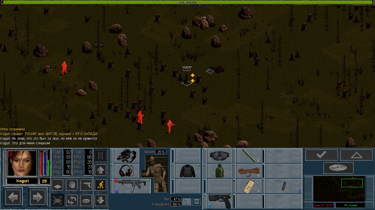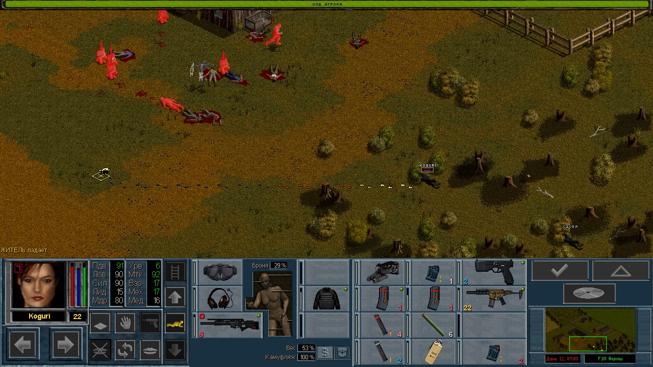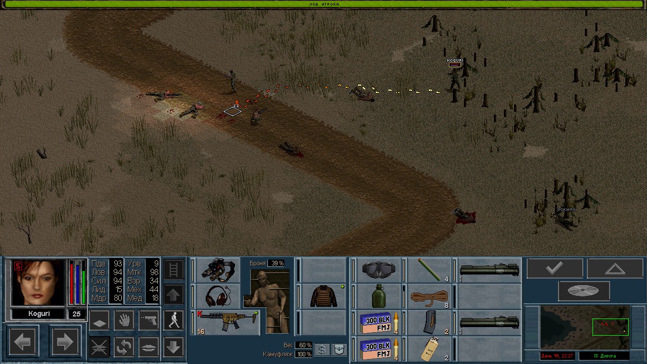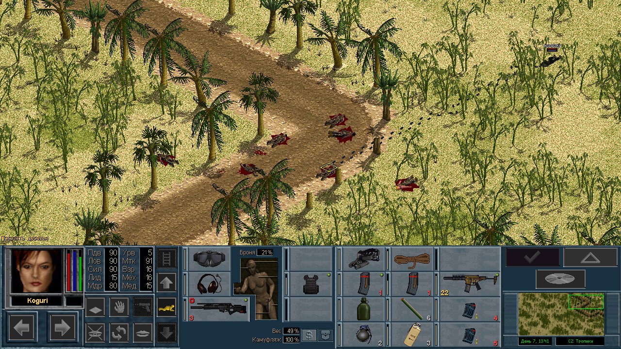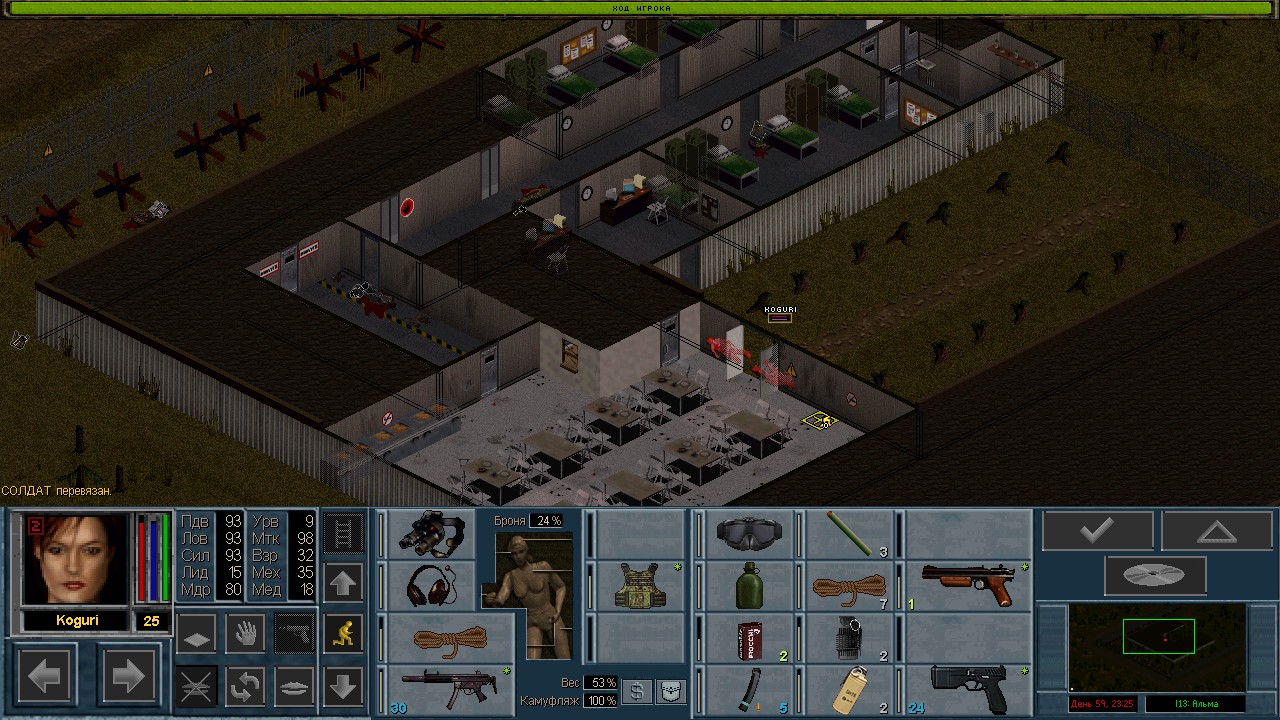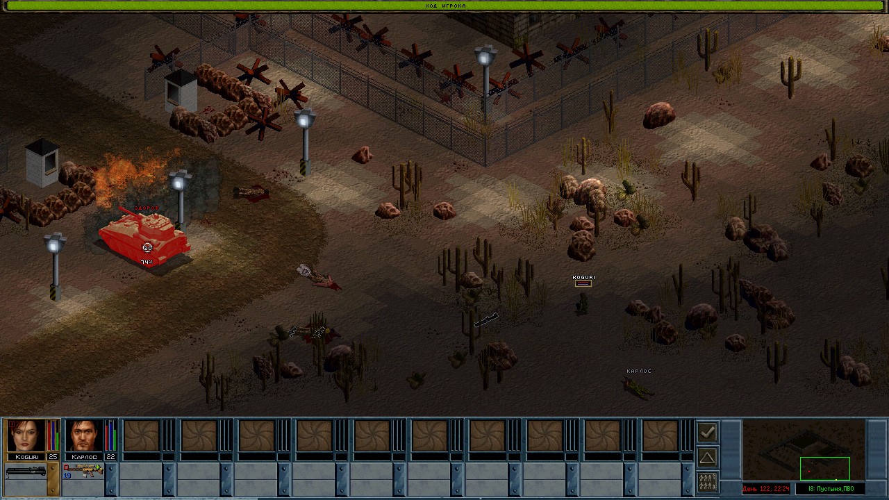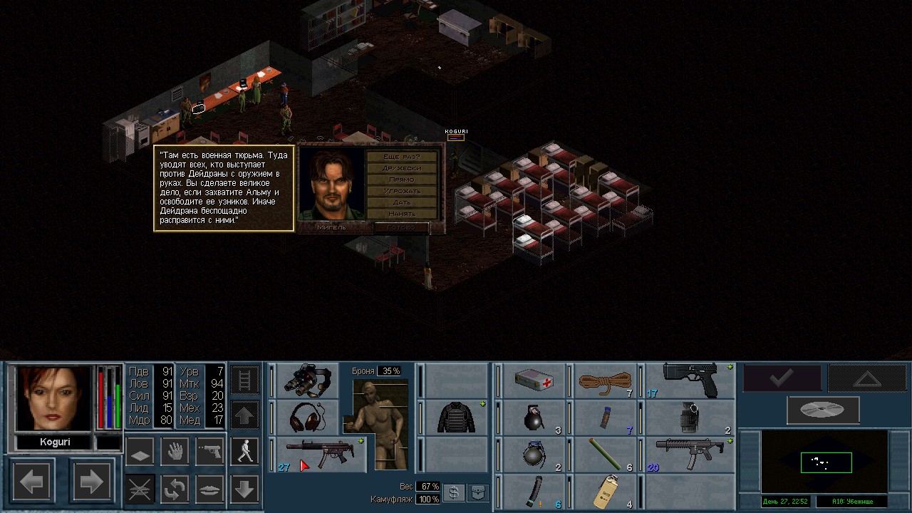Вот бы какую-нибудь кнопку запрещающую ополчению стрелять. Правда как это сделать я не знаю, скорее всего вообще запретить атаковать. Или на один ход, чтобы они совсем уж беспомощными не были. Вчера напали ночью на ПВО, 28 солдат. Поначалу стреляли, кто куда горазд, потом стрелять начал я, ну и соответственно под конец боя двигать ополчение, менять местами, туда сюда микрить. И вот лежат они такие за мешками, мигают только. Такая лампота, а враги чето там суетятся, бегают. Ничего не могут сделать, потому что тишина. Последних восьмерых застрелили эти два чувака на вышке. Остальные бросали свет и подсвечивали цели. Пока что остается микроконтроль с полной тратой од каждым бойцом на линии огня. В общем тоже вариант, сначало было трудно, теперь нормально. Играть исключительно интересно. Вместо кнопки запретить разговор. Зачем она ополчению А Мигель пару раз выстрелил и бросил 3 хим. осветителя. Сидит там чтобы автобоя не было. Хотя на ПВО его может и не быть, все время забываю проверить.
