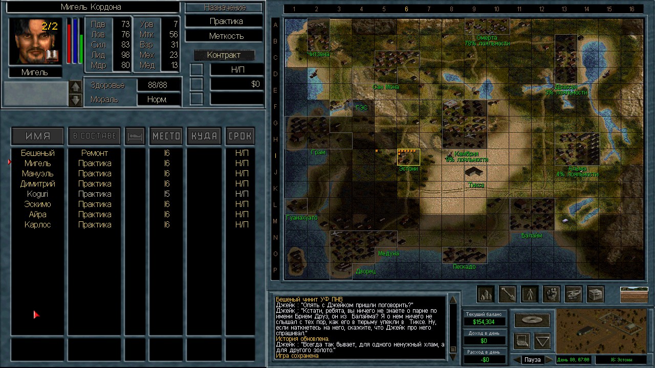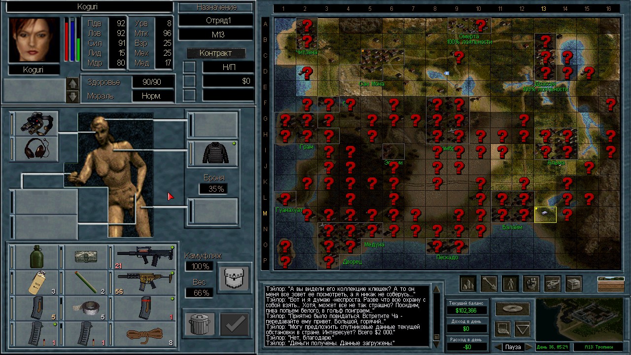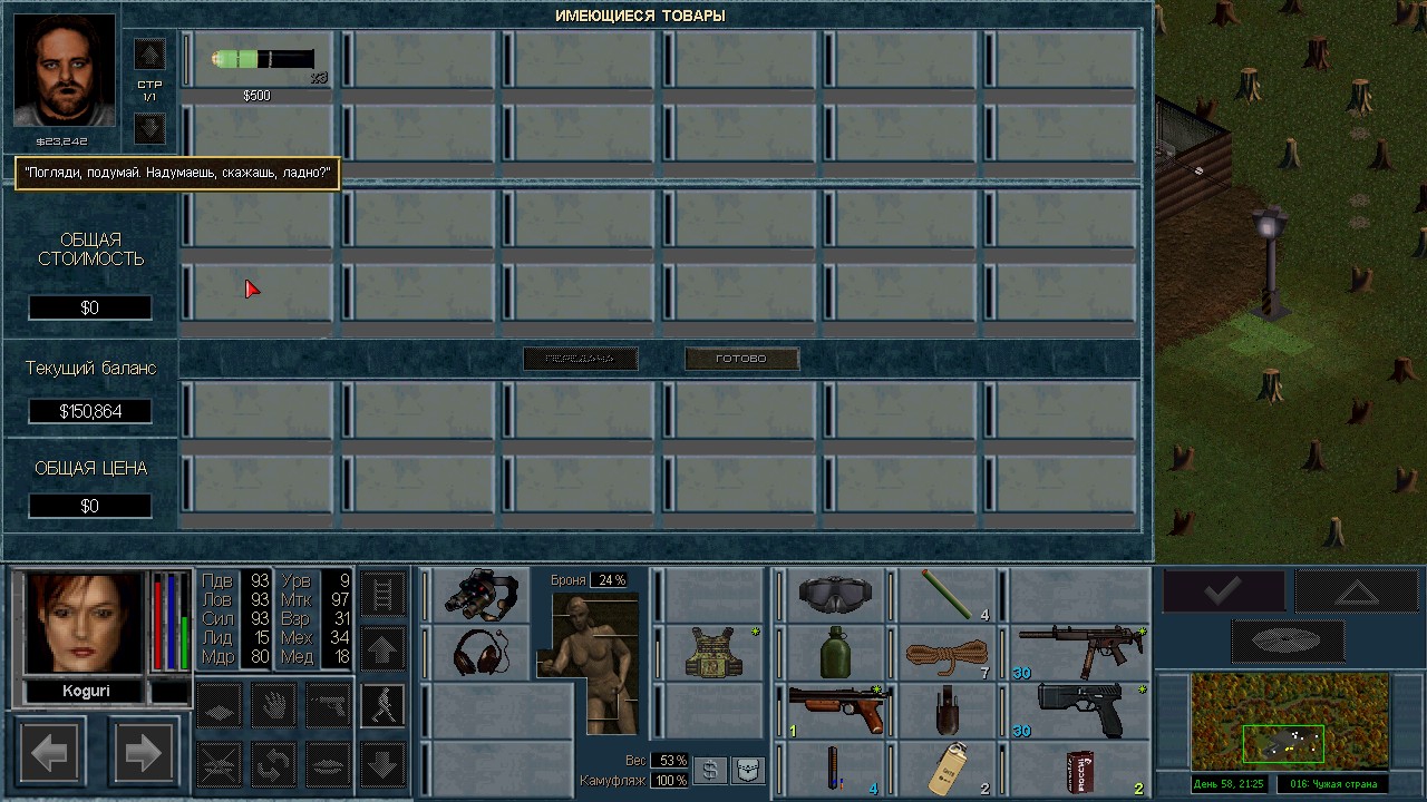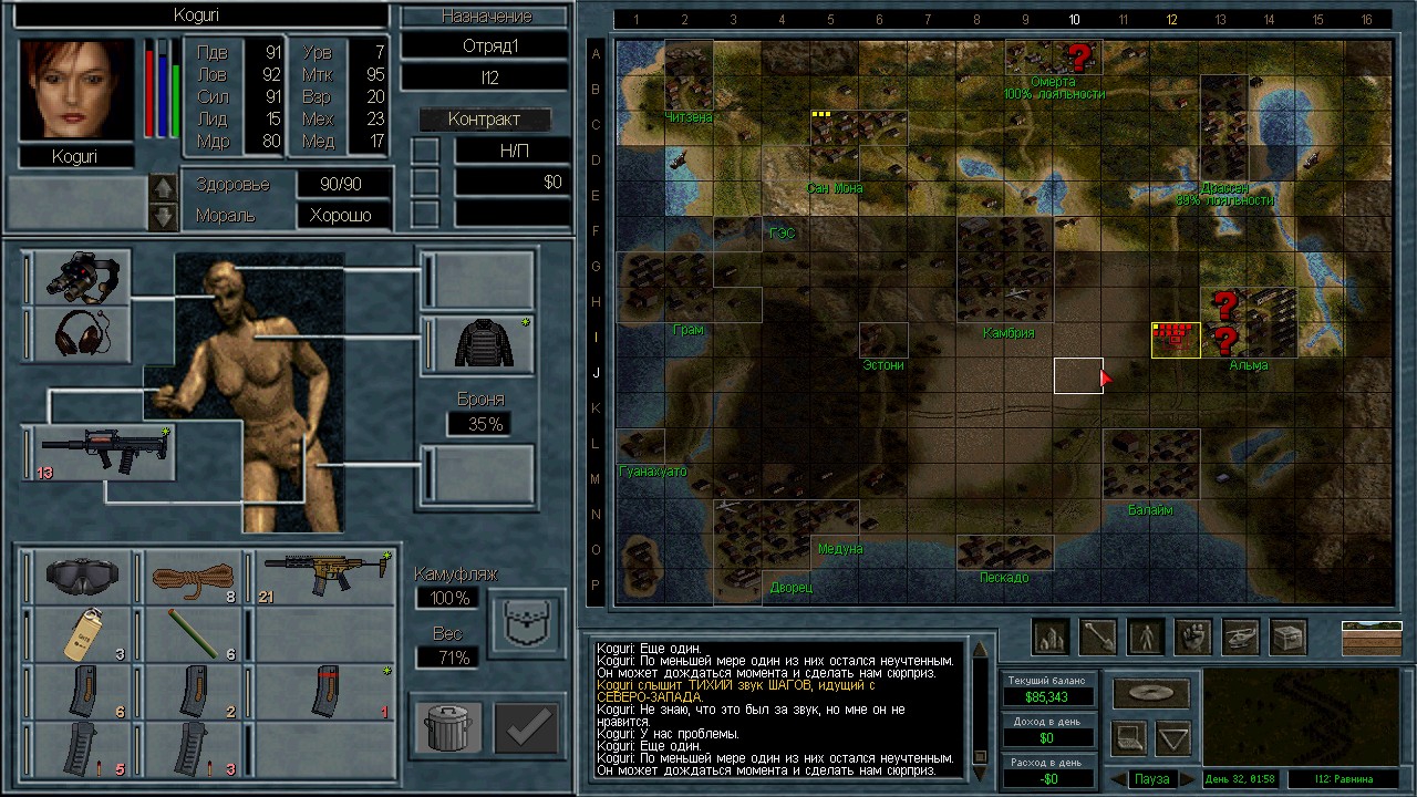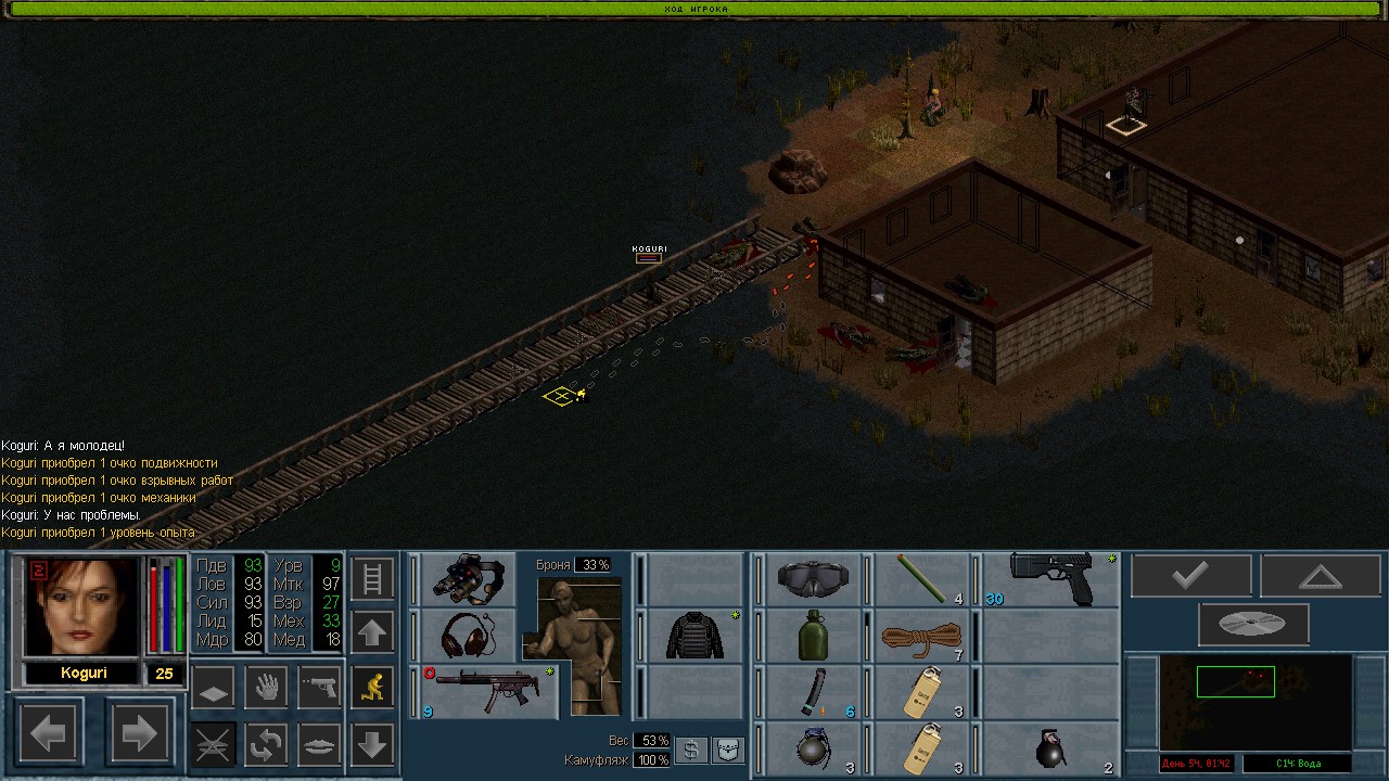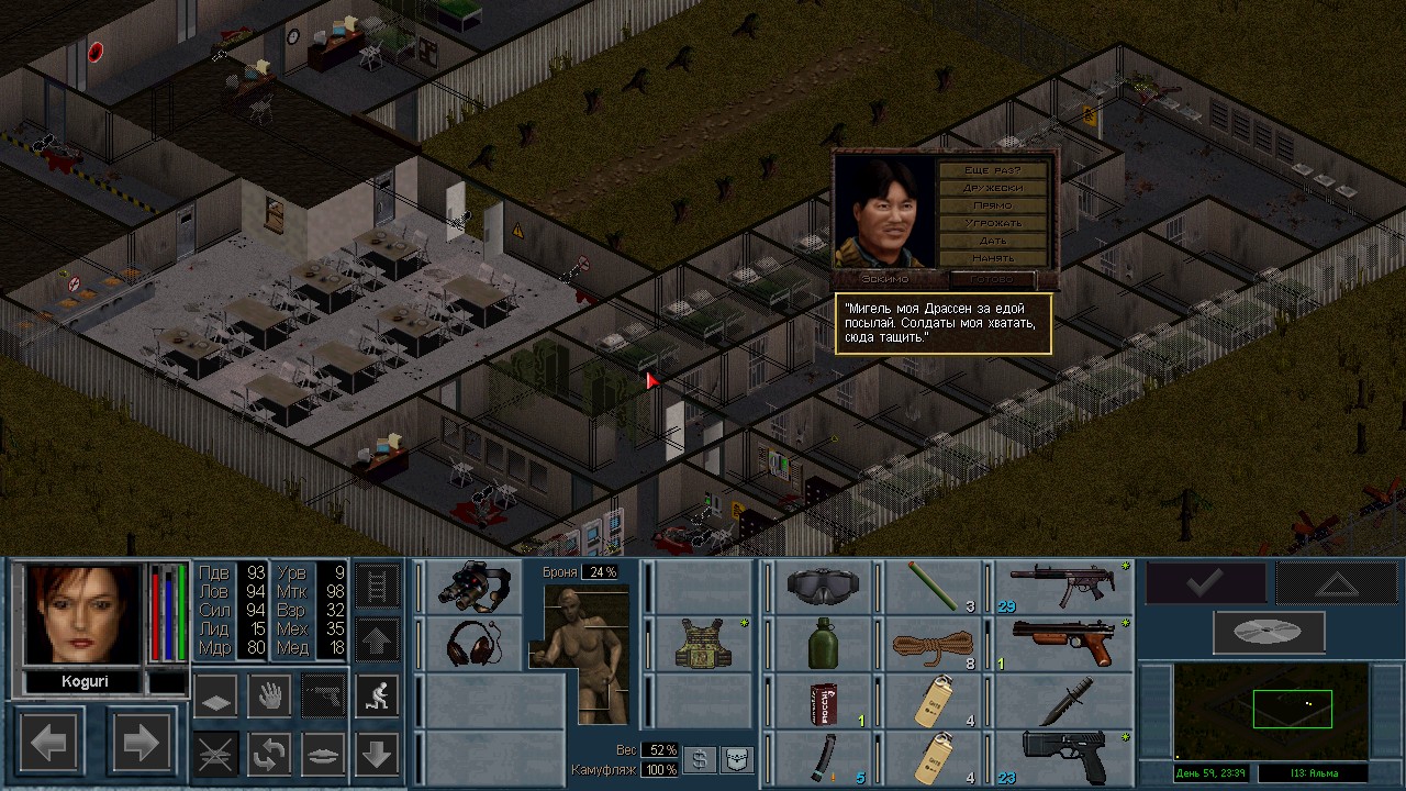 Вот бы какую-нибудь кнопку запрещающую ополчению стрелять. Правда как это сделать я не знаю, скорее всего вообще запретить атаковать. Или на один ход, чтобы они совсем уж беспомощными не были. Вчера напали ночью на ПВО, 28 солдат. Поначалу стреляли, кто куда горазд, потом стрелять начал я, ну и соответственно под конец боя двигать ополчение, менять местами, туда сюда микрить. И вот лежат они такие за мешками, мигают только. Такая лампота, а враги чето там суетятся, бегают. Ничего не могут сделать, потому что тишина. Последних восьмерых застрелили эти два чувака на вышке. Остальные бросали свет и подсвечивали цели. Пока что остается микроконтроль с полной тратой од каждым бойцом на линии огня. В общем тоже вариант, сначало было трудно, теперь нормально. Играть исключительно интересно. Вместо кнопки запретить разговор. Зачем она ополчению А Мигель пару раз выстрелил и бросил 3 хим. осветителя. Сидит там чтобы автобоя не было. Хотя на ПВО его может и не быть, все время забываю проверить.