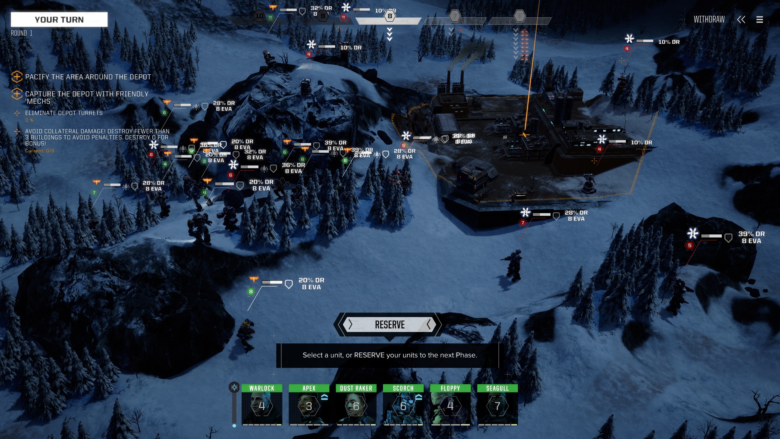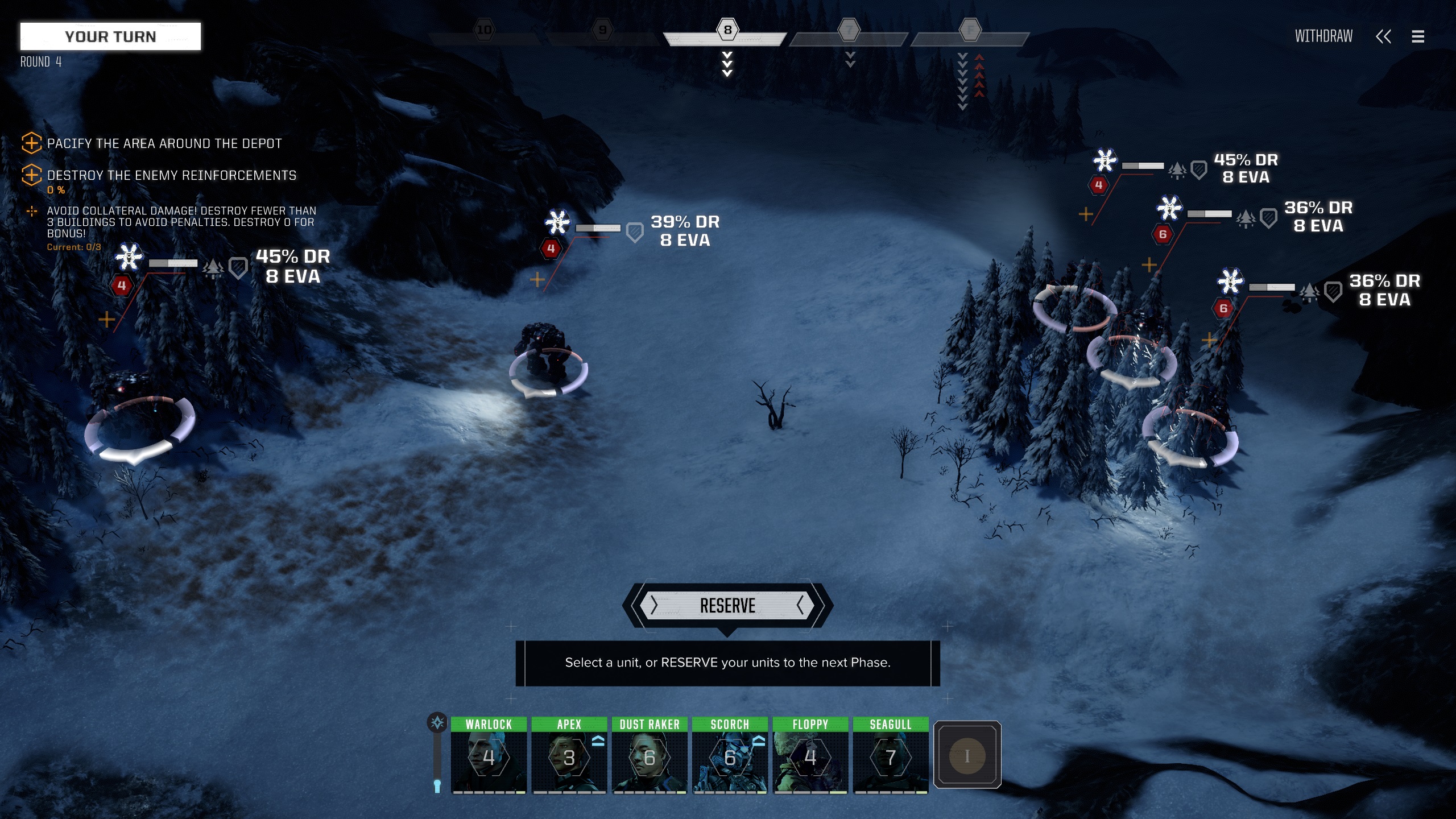 Если исключить навязчивые попытки ботов застрелить робота и оббежать меня сбоку, можно сказать что враги действуют в общем неплохо:контратакуют с разных направлений на карте и в разное время суток.