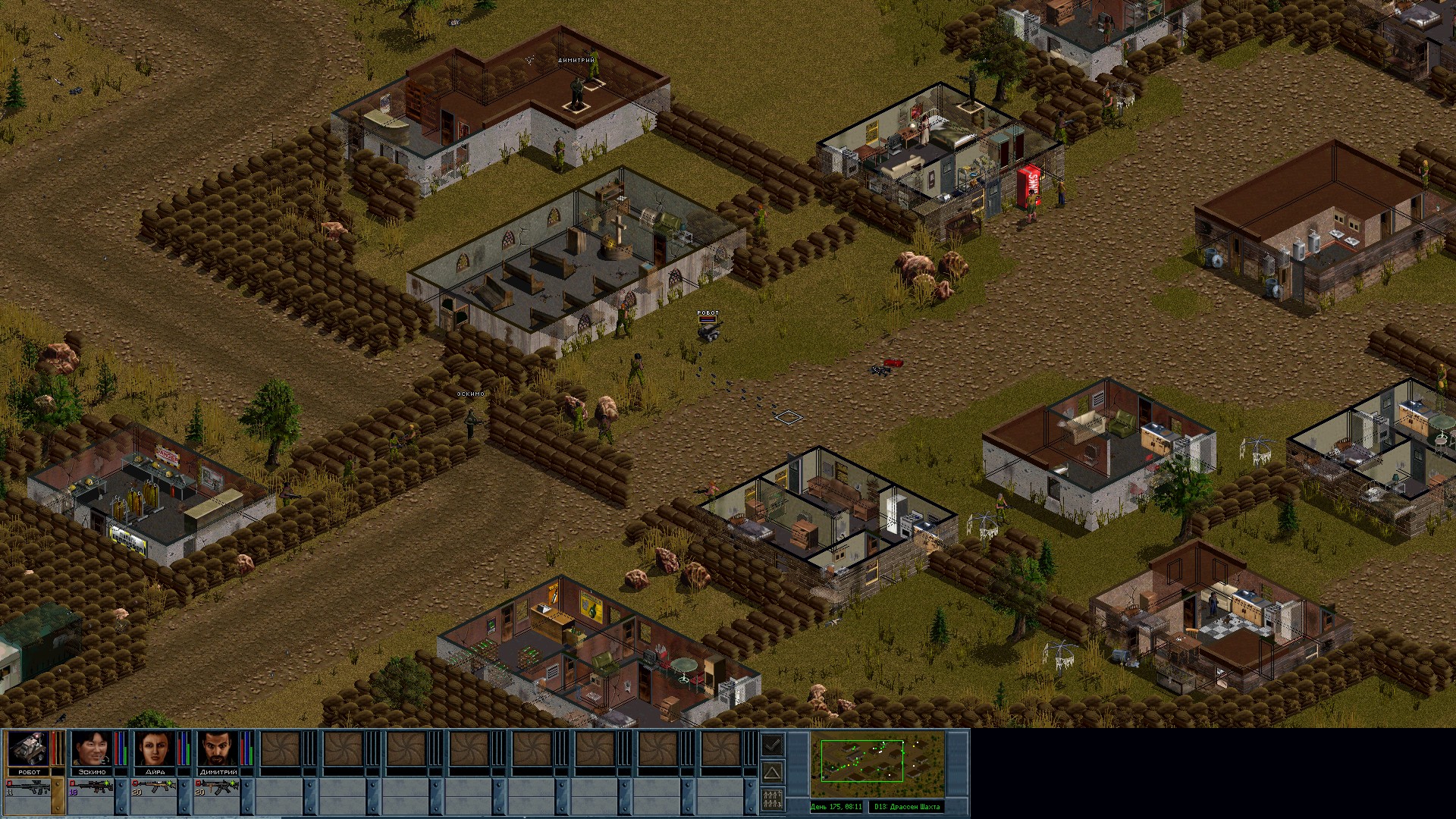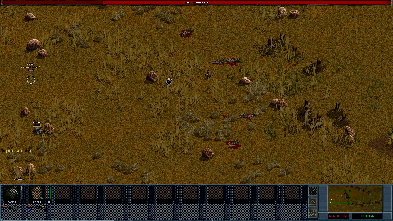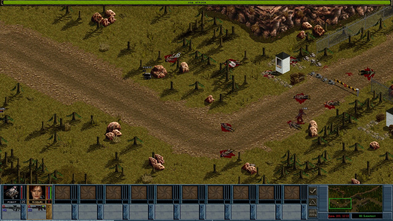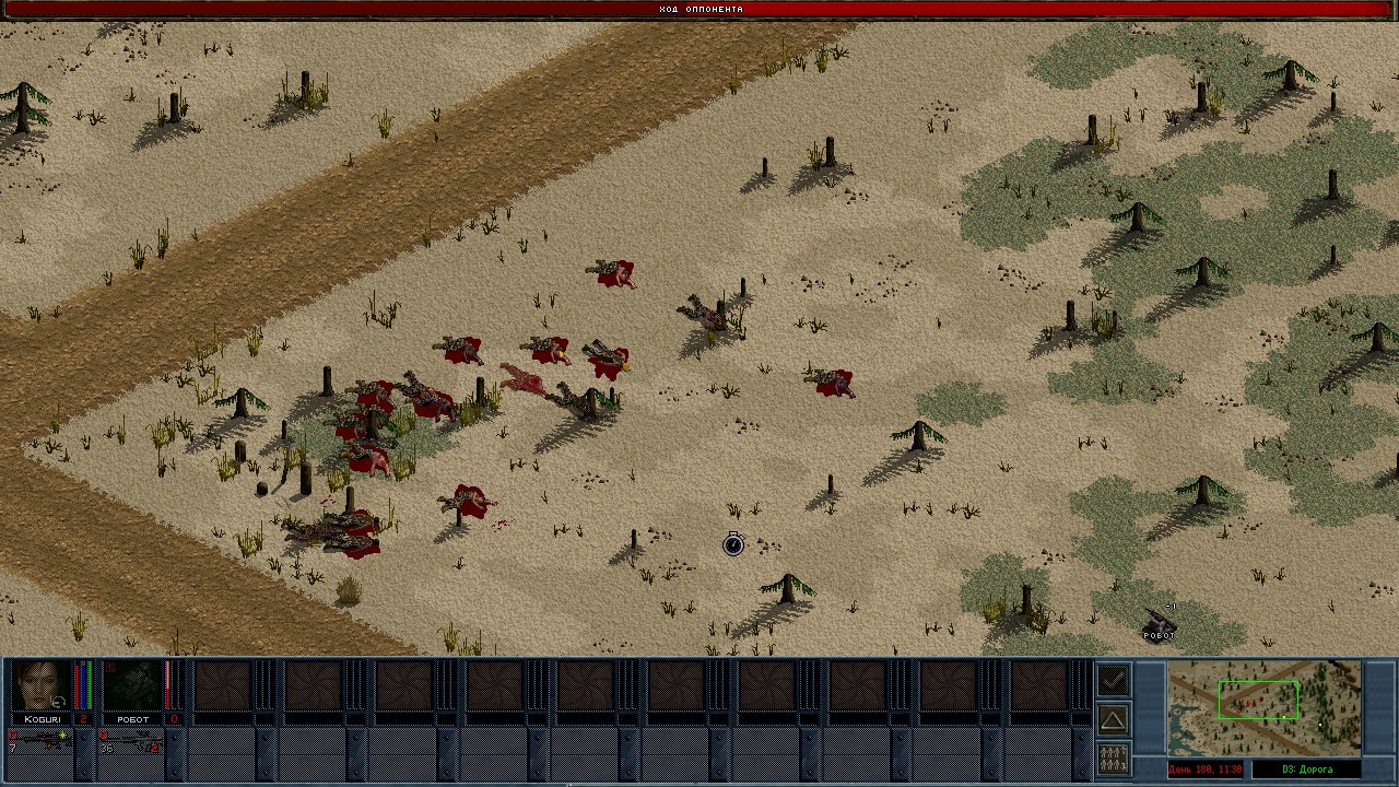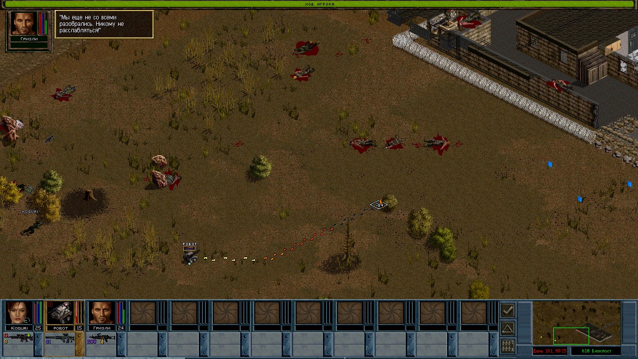 Потом попробовал робота еще раз на блокпосте у Балайма. Тут вообще все легко. Сразу заметно что роботом управляет опытный наемник. Когда в Драссене быд Димитрий, робота все перехватывали. А тут все мои ходы из реального времени. Учитывая что больше половины солдат сидело на крыше.