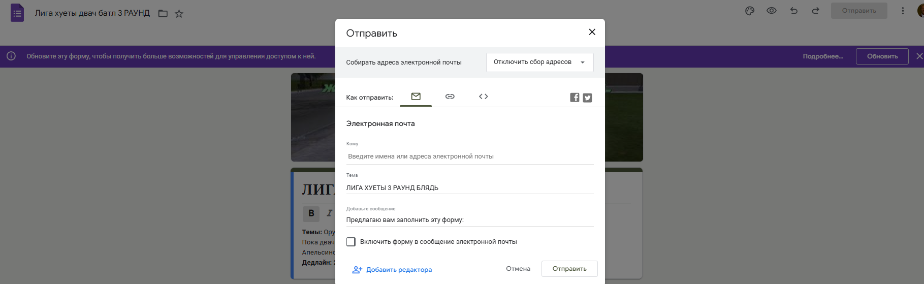 >>1047671 Один голос основного эмце. Можешь добавлять другие как будто это фит >>1047669 Бля так на всех батлах было, но я там галочку не собирать адреса нажал так что все ок