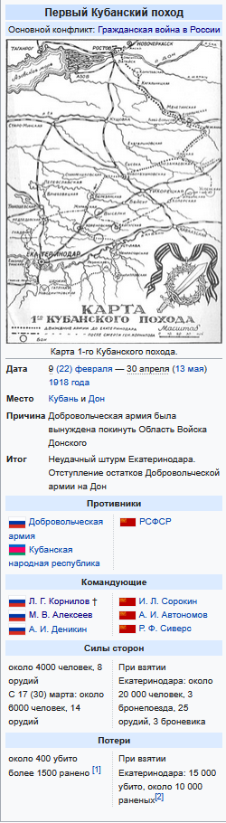 Первый Куабнский поход, штурм Екатиринодара и Википедия
