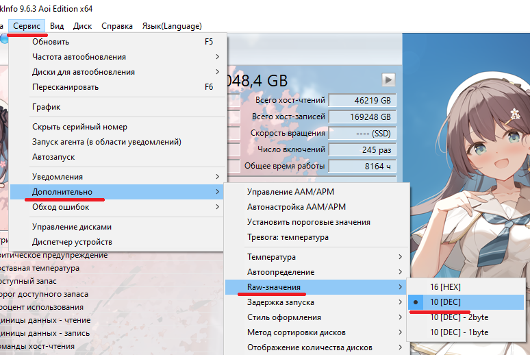 При вопросах о состоянии ссд по смарту переключай программу Crystal DiskINFO в десятичный режим! (ОП-пик №2)