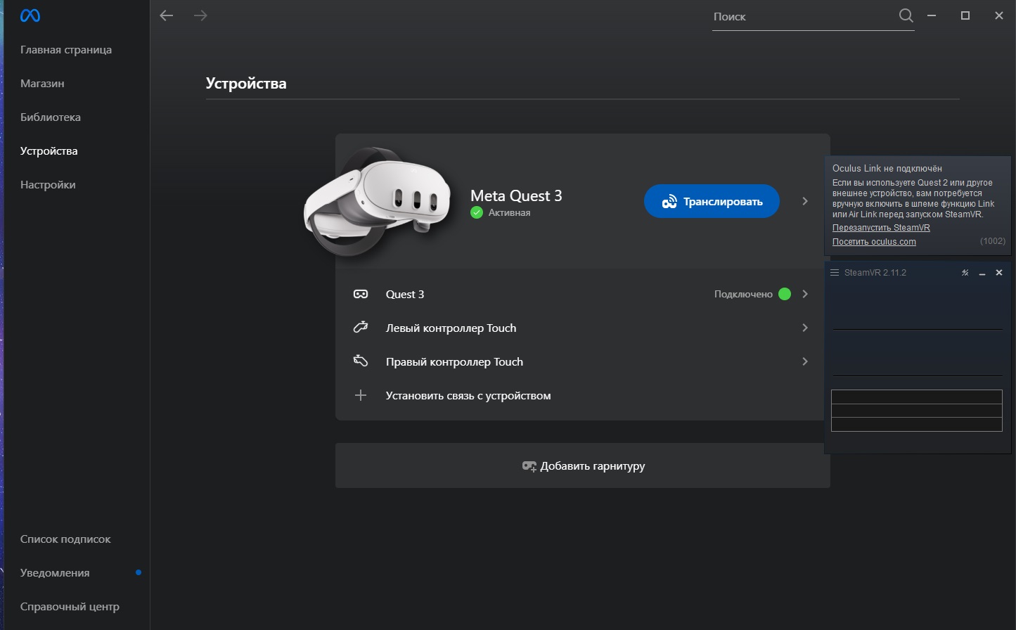 Господа. ПК не видит шлем через айр лин. Через кабель все ок, через стим линк все ОК, через ВД ок. А через айр линк не видит. Эир линк нужен чисто чтобы транслировать игру со шлема на ПК через каст.