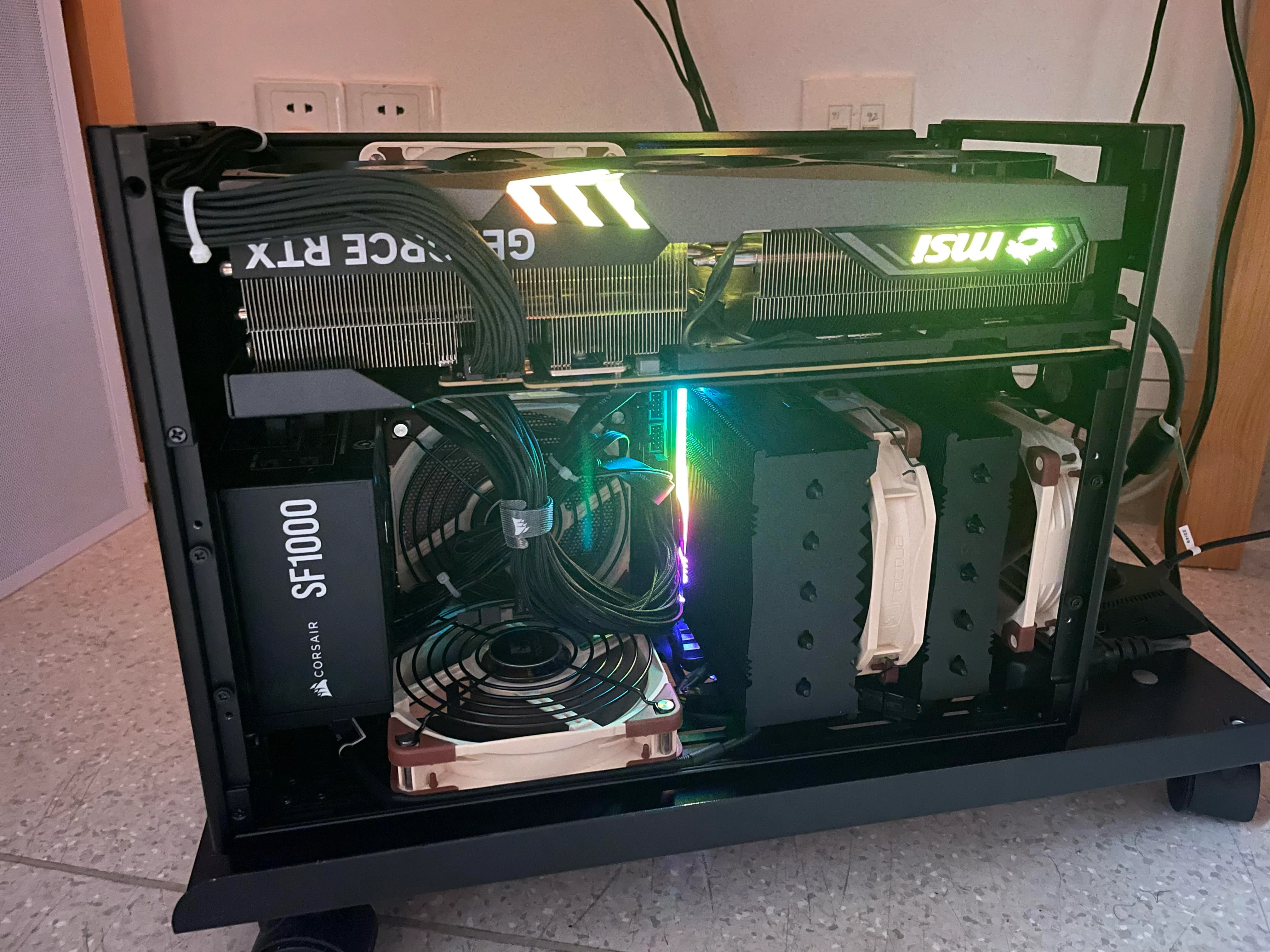 Два GPU не влезают (0 мм промежуток, нет воздуха). inb4 зачем - для LLM и рендеринга видео. 1. Решение: PCI-E шлейф-удлинитель, монтаж нижнего GPU на кронтшейн. 2. Проблема: в старом корпусе нет места под пикрило-подобный кронштейн.