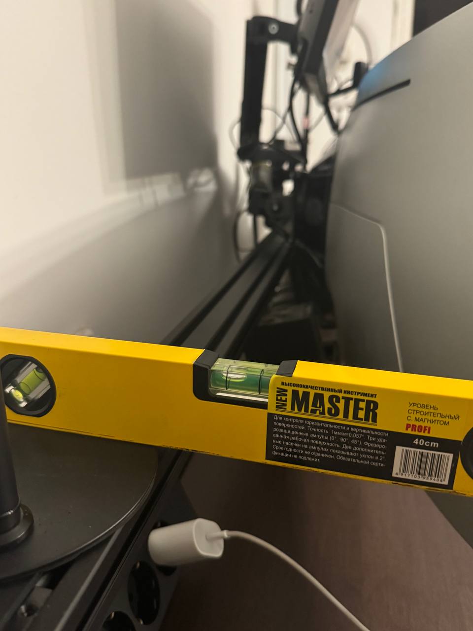 Крепление к направляющей использовал родное, ультраширокий закрепил на не родную руку NB H100, а уже на родную руку поставил второй монитор. Прогиб есть но он очень небольшой- на уровне нескольких миллиметров. Сам стол достался новый мне за 37К, новый с магазина, урвал по большой скидке. В моем городе такой же 120к стоит. За такую цену слишком пиздатый