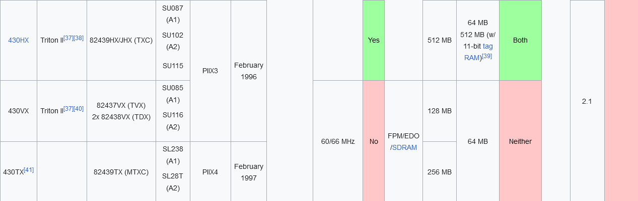 >>7494722 Мне досталась пикрил-красавица(430TX в исполнении гигабайта), я хотел к ней приделать пару Voodoo 2 в sli. По поводу Pentium MMX - у чипсетов интела есть проблема - оно может кэшировать до 64 мб, поэтому установка объёма побольше там сильно опускает производительность платформы в целом(на вогонсах аж о -40% говорили) а у пней нету кэша нормального чтобы это компенсировать. 64 мб - это, блять, мало, я хочу 256, даже 486 умел в 256. AMD K6-II/III вроде имеют хороший кэш, но я в них не особо понимаю, а когда пишут про эти камни и сокет 7, далеко не всегда указывают, это просто сокет 7 или "супер" сокет 7, поэтому и неясно, что и куда подходит.
