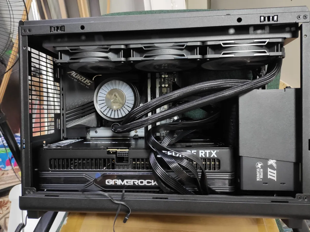 >>7475677 Атх-мамка влезет, 5090 влезет если съёмная дисковая корзина, даже NH-D15 на проц встанет и будет закрываться боковая стенка. Проблема в другом - это непродуваемые гробы, где 120мм на вдуве дисковой корзины и 80мм-ишачок на выдуве с проца. Тут действительно надо дрелью делать перфорацию на крыше и боковой стенке с установочными местами для нормальных вентиляторов чтобы оно обдувалось.