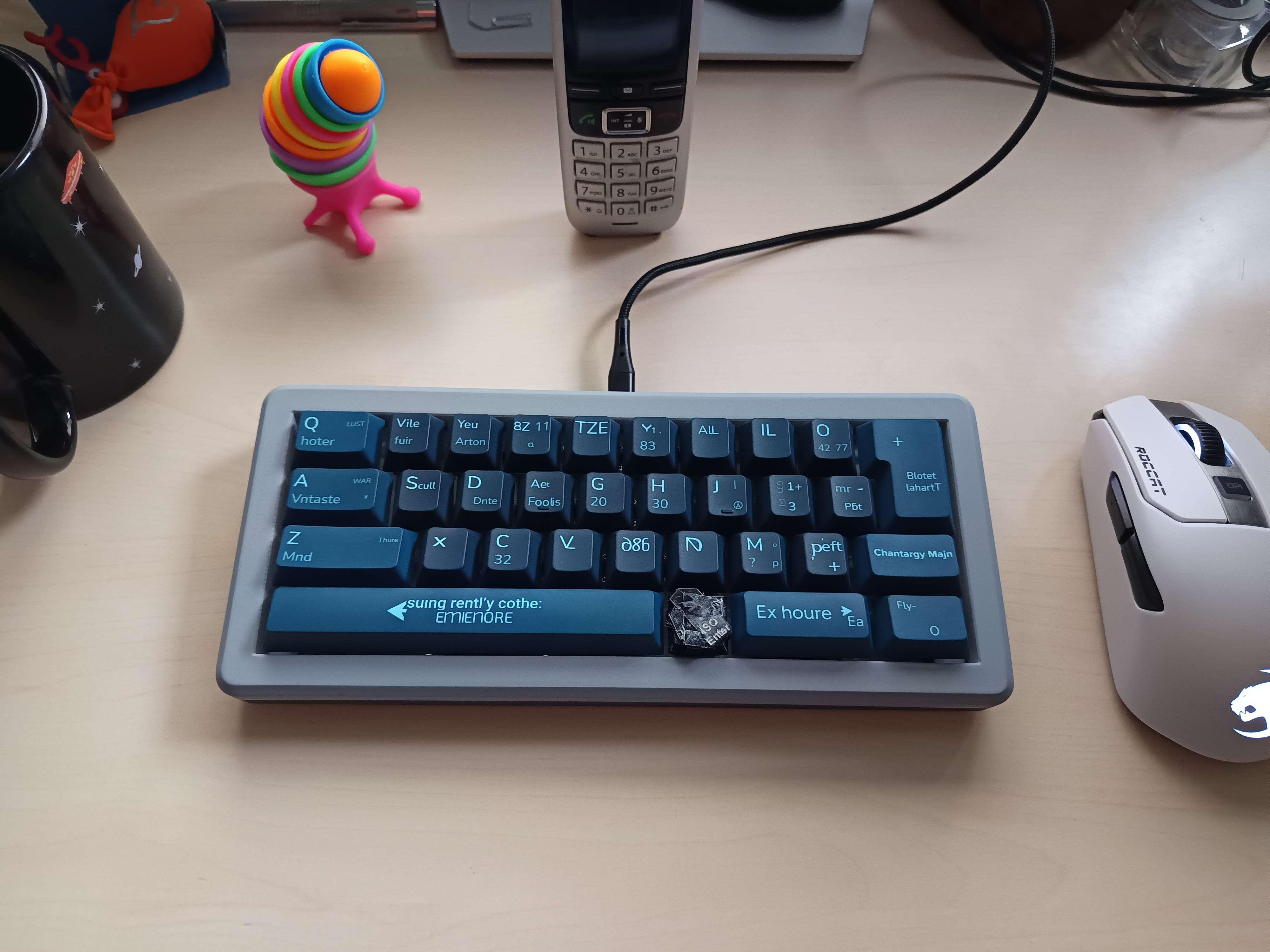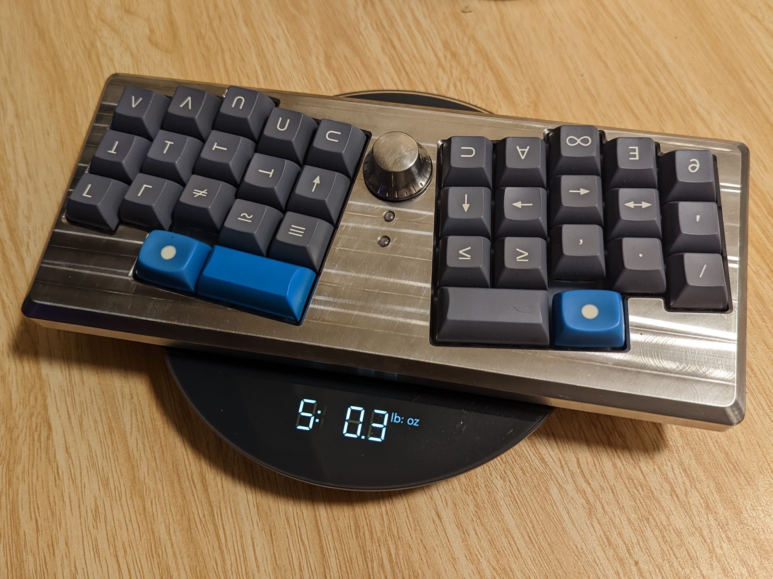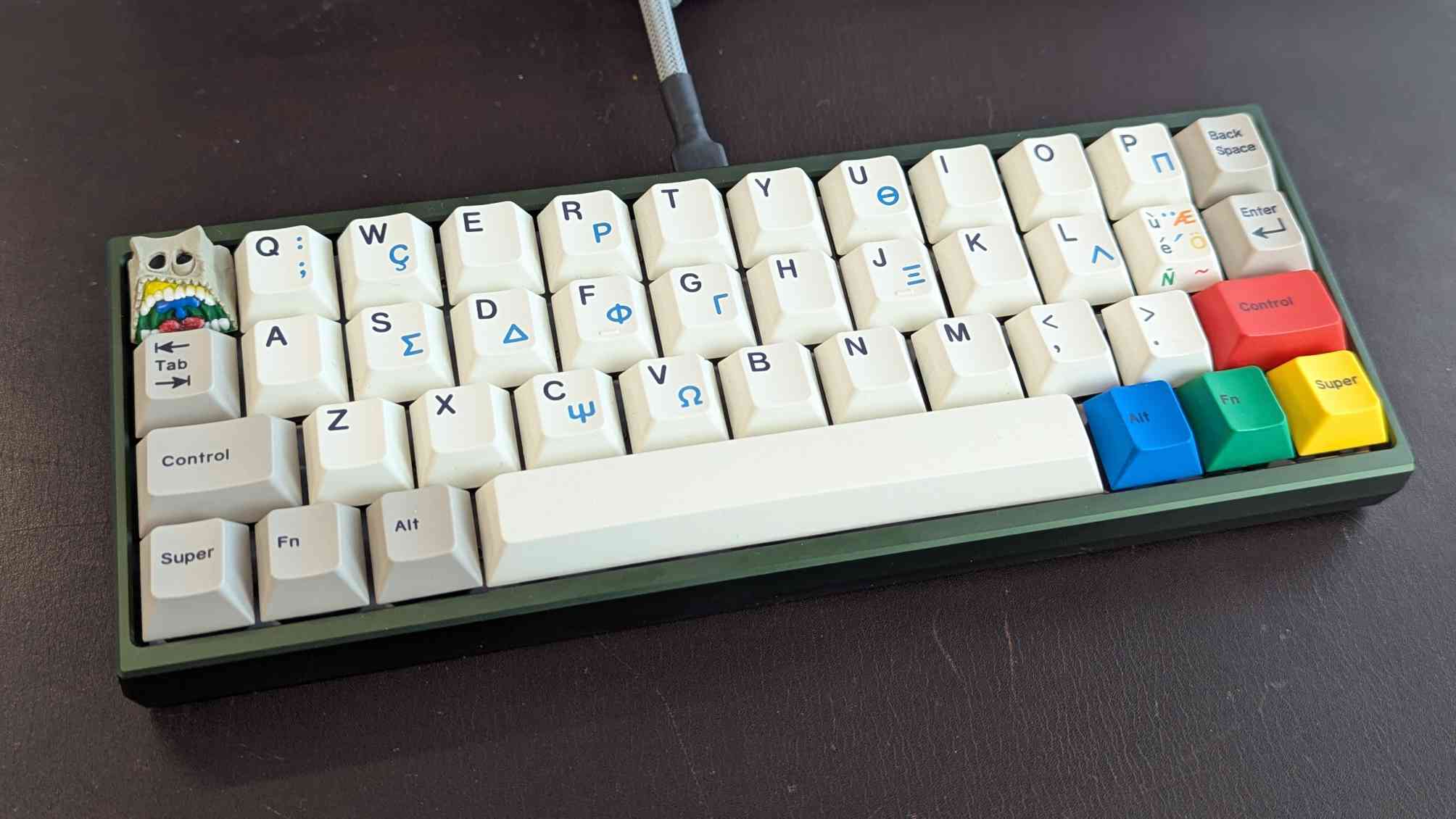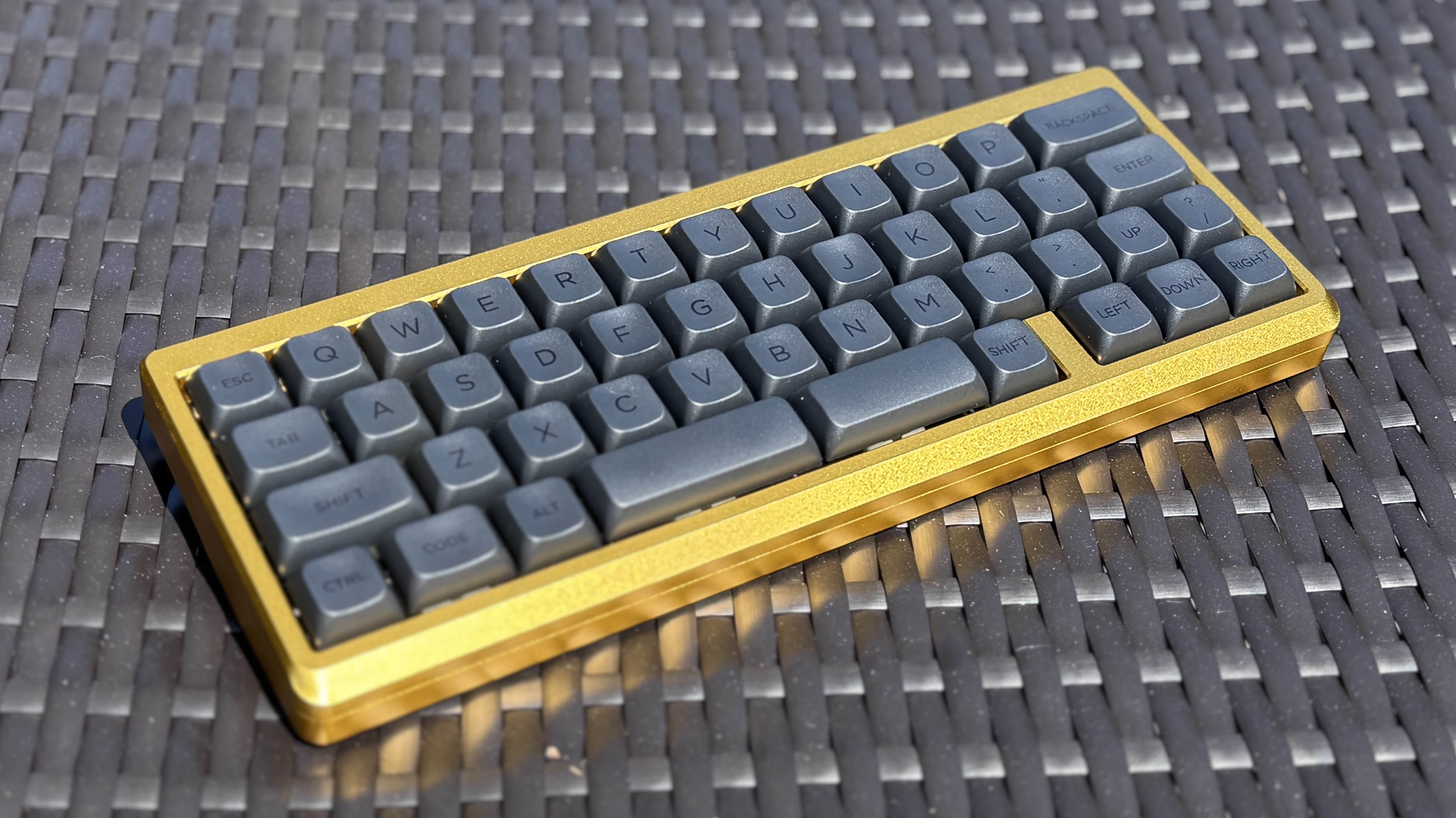 Обожаю эту штуку. В отличие от других 40%, тут кириллица целиком влезает, ну и вообще очень приятная тактильно штука. Брусок под килограмм весом, гаскет маунт, очень кайфовые свитчи Zebra. Есть via. А есть еще 40% с полными рядами?