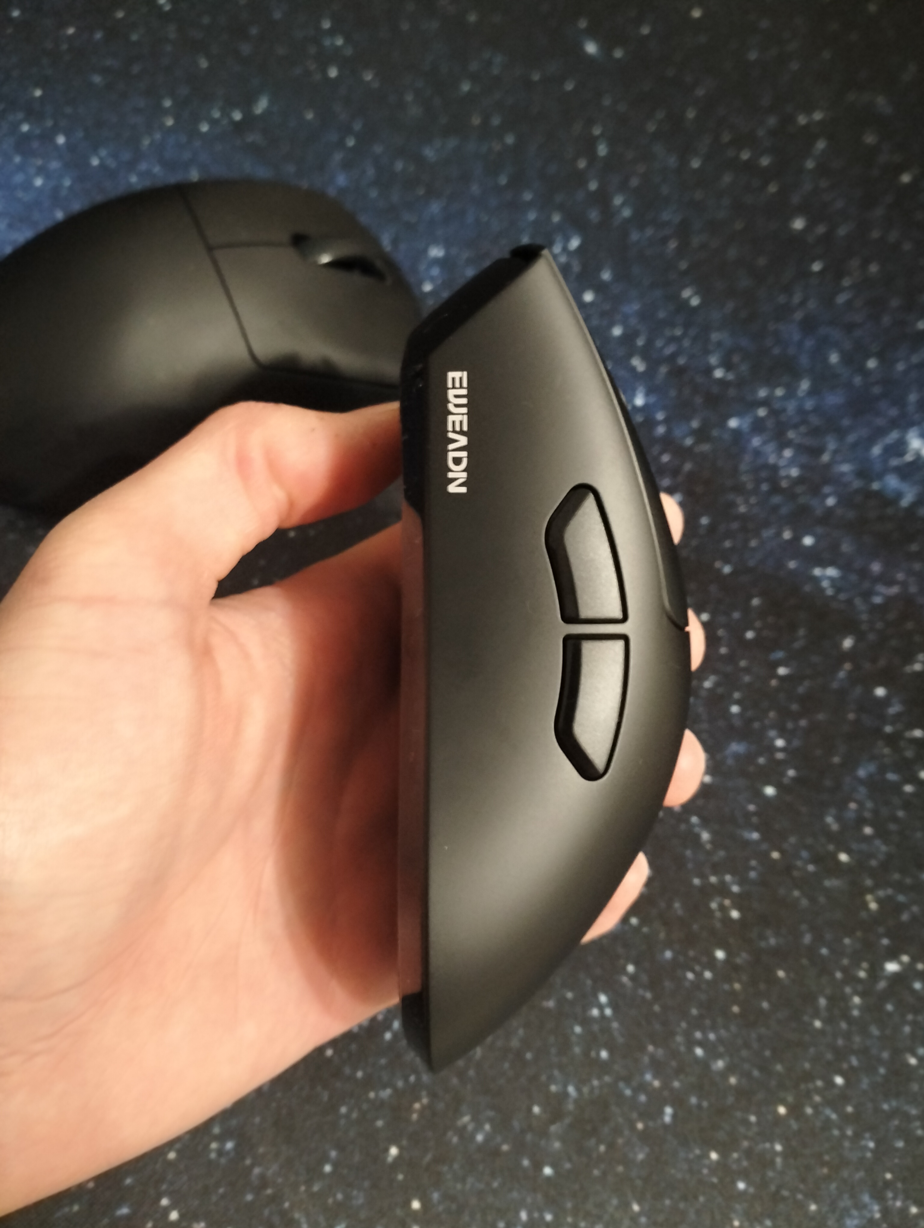 Рядом ATK z1u, евадн в моей 19х9 руке лучше лежит. А вот с кликами опять мне повезло. ПКМ нажимается, вроде, приятно. А вот лкм жмется совершенно по-другому, более мягко расхлябанно и невнятно. По размерам сами плодадки под пальцы почти одинаковые, поэтому клик должен быть одинаковым, дело явно не в том, что это эргономика. В ATK вот тоже асиметричная форма, да еще и кнопки по размеру откличаются, но микрики нажимаются одинаково. Штош...