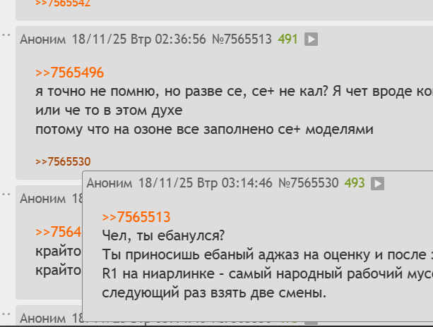 >>7565513 Чел, ты ебанулся? Ты приносишь ебаный аджаз на оценку и после этого ещё рассуждаешь о том, что кал, а что нет? Нахуй иди, короче. R1 на ниарлинке – самый народный рабочий мусор без отвалов, иначе с твоим бюджетом можешь тогда предложить мамке-шлюхе в следующий раз взять две смены.