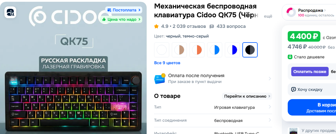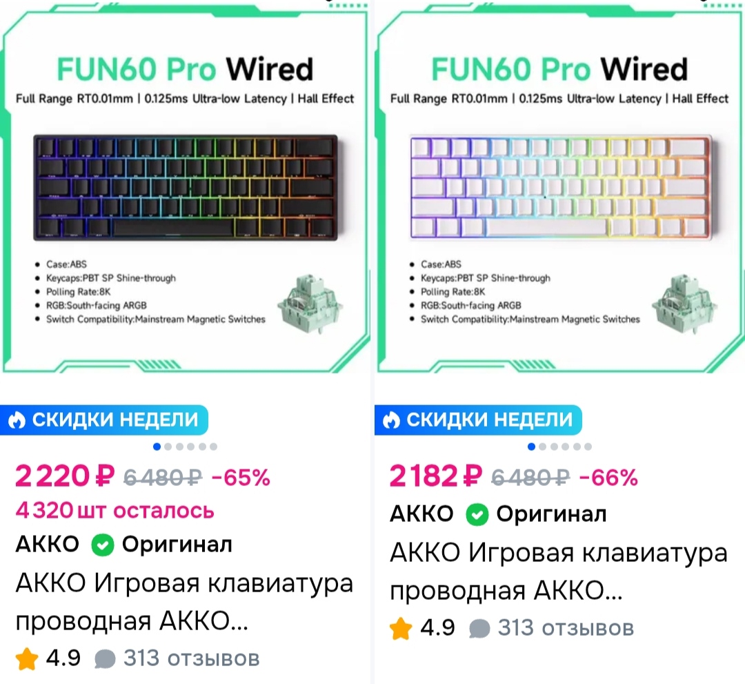 короче купил аулу ф75, оказалась по итогу хуетой, потому что в любимых ТАНКАХ и не только по беспроводу работала с ебаными задержками почти всегда, вернул, позвонили с ям и предложили по цене аулы (4200) любую другую клаву до 8к. Выбирал чтобы была не аула/кидо/ажаз, потому что это одно и то же (epomaker), выбрал какую то хуйню от Haier. Кто-то шарит это говно или норм?