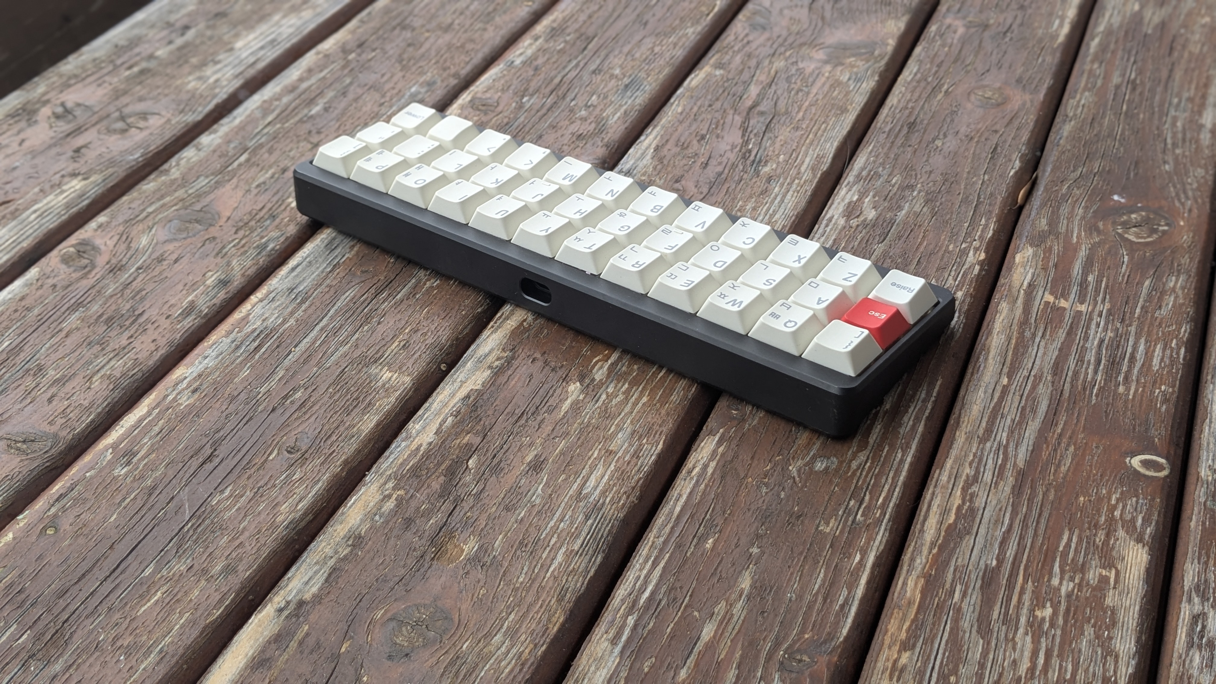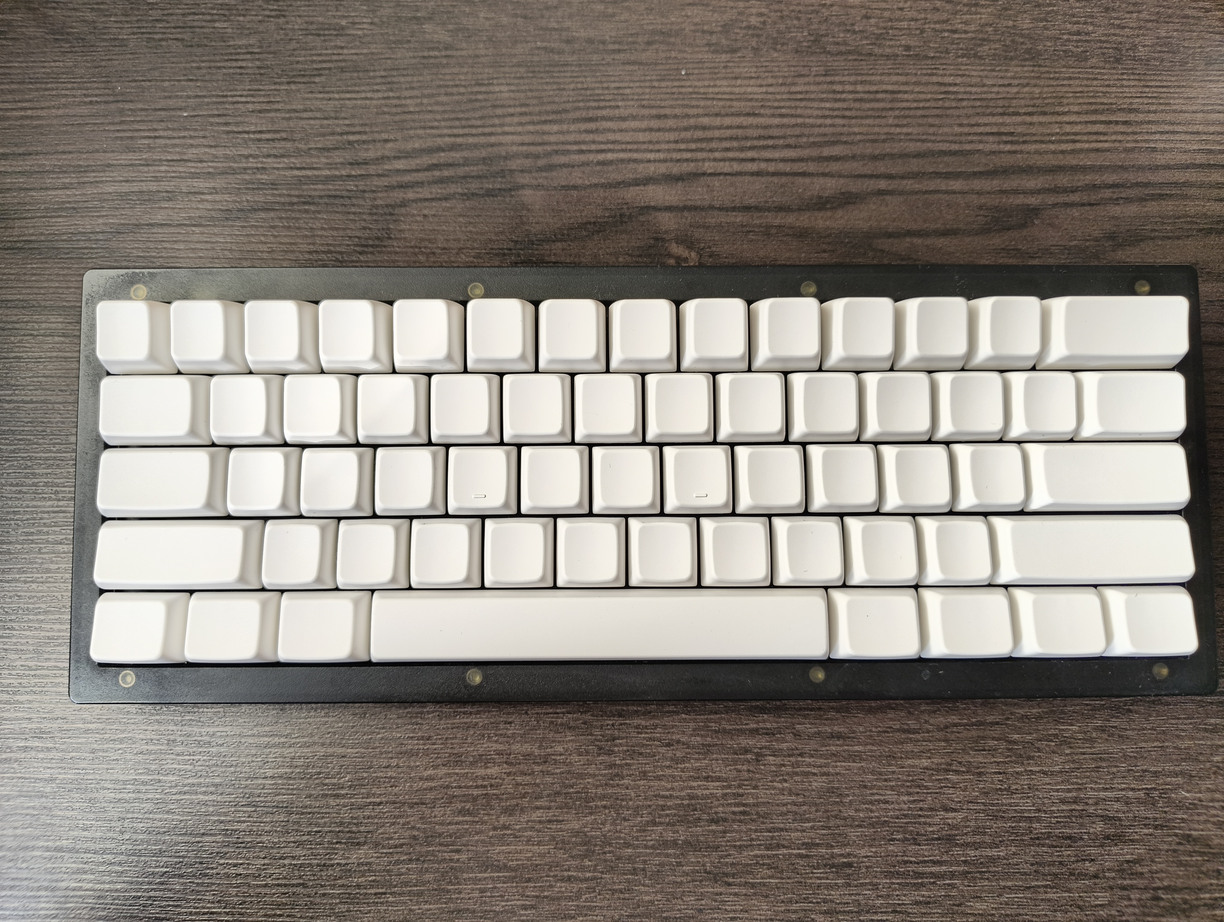 Собрал на базе кейхорна 60% на 53г свичах MMD Vivian с пустыми PBT кепками MDA профиля (средняя высота, скульптированы, сферическая выемка, на мой взгляд, одни из самых комфортных для печати). Прошивку скомпилировал на базе QMK-VIAL с поддержкой комбо, подстановок, в 4 слоя, первый включается на Капс под мизинец левой, второй на пробел, третий на меню под мизинец правой.