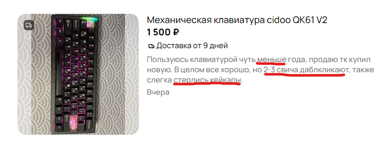 Так не надо клавы по низу рынка без имени брать, не будет таких проблем. Начиная с 2025 года любая клава с каким-никаким именем дороже 5 тысяч рублей обгоняет любую Cherry на несколько голов.