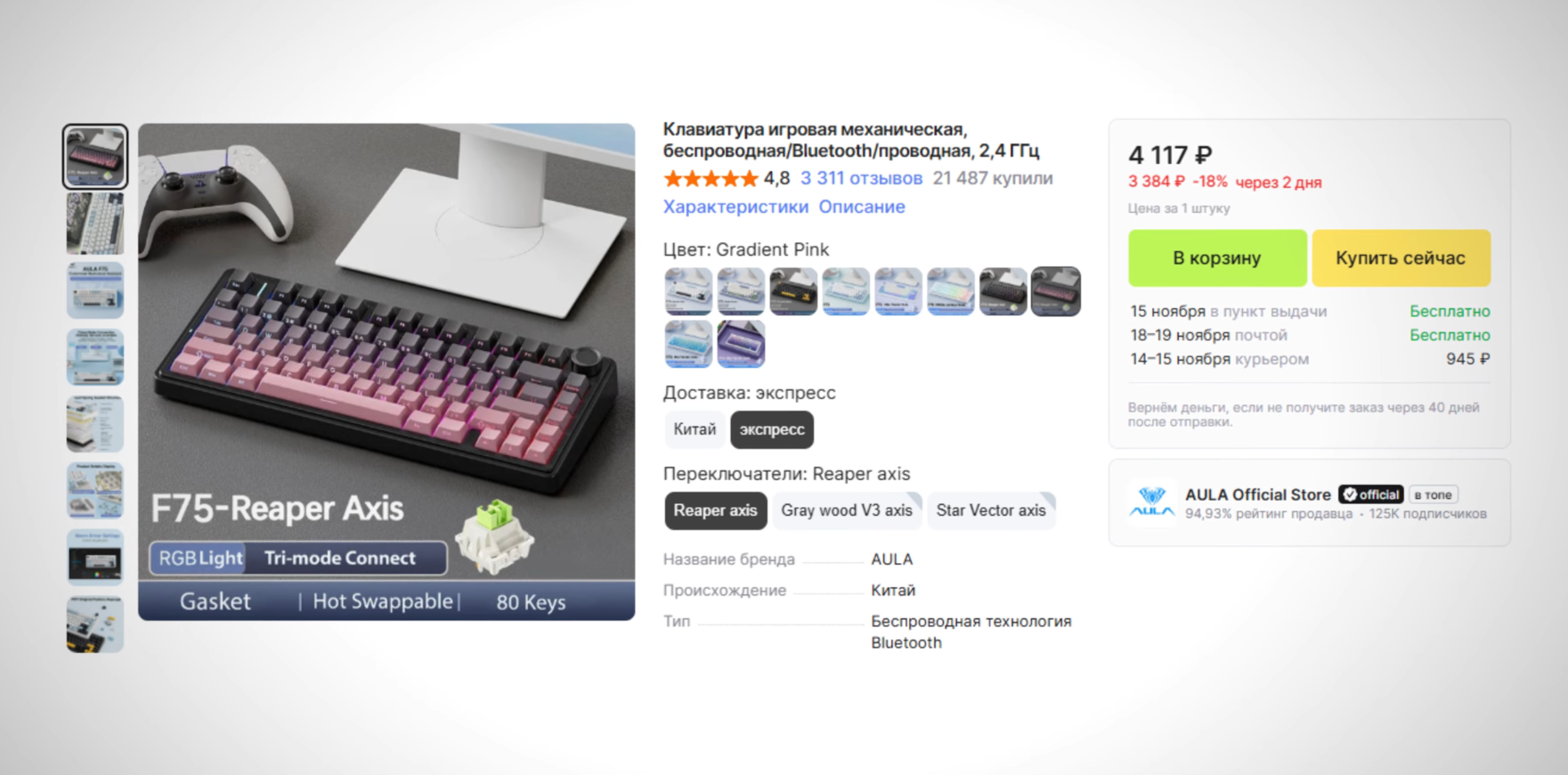 Чекайте какой я умный! Заказал Аулу ф98 на озон глобале, чтоб выдрать из нее леобого-риперы и фиолетовые градиент капчики. Так дешевле, чем покупать это по отдельности.