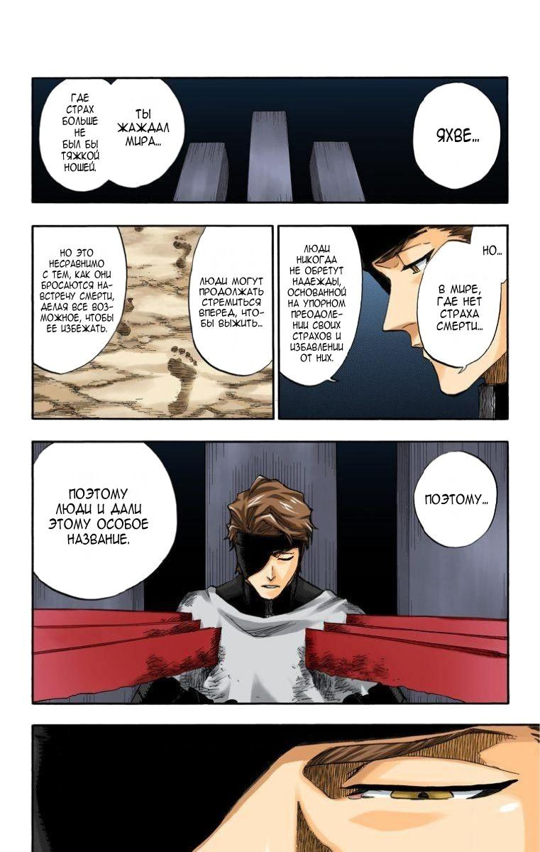 Q871: В последней главе мы видим, что хоть Айзен и в Мукене, но его рот и глаз не запечатаны. Это связано с уменьшением его срока в заточении? A871: Это было решение Шунсуя. Его способ отблагодарить Айзена за помощь на войне.