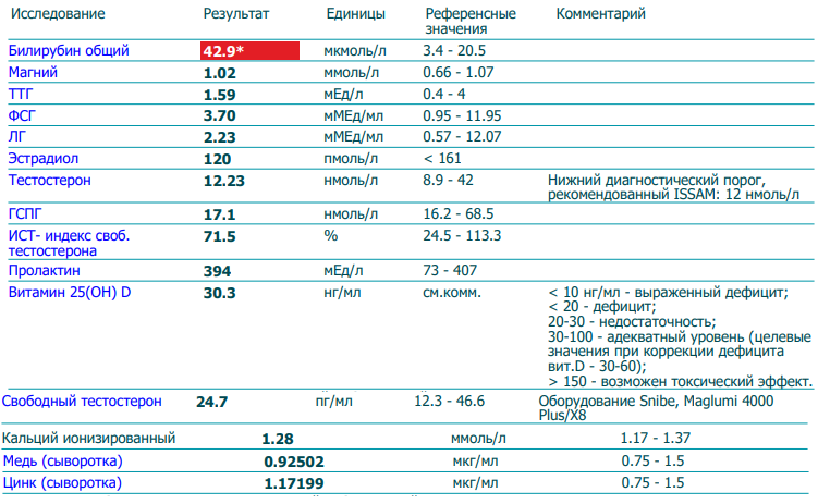 Что имею сейчас: абсолютно нет либидо в последние две недели (утренние эрекции есть, так что проблемы с потенцией нет), нет желания что-либо делать, нет амбиций, апатия бывает накрывает, очень сильно потею, хочу всегда спать и всё вышеперечисленное умноженное в несколько раз. Ощущение что жизненный пик пройден и я гасну. Чтобы отбросить психологический фактор, у меня с этим всё нормально, депрессии нет, загонов нет, единственное что расстраивает - проблемы со здоровьем, которые охватывают почти всё моё тело. В апреле тест общий был 21, но даже при этом, у меня никаких изменений не было, чувствовал себя так же как и сейчас. Этого теста для мужчины достаточно, но я всё равно выгляжу как школьник.