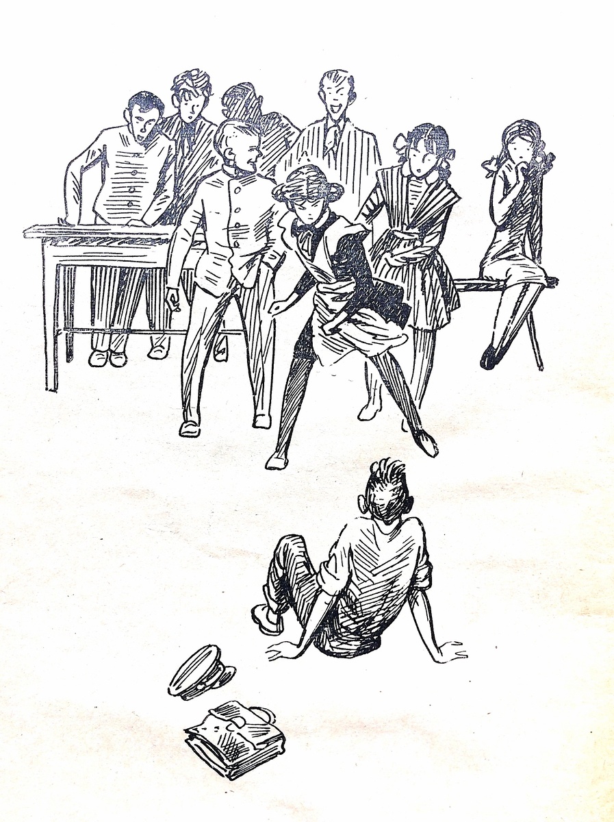 Прямо на собрании разъярённая Луна дала сильнейшую затрещину Вулчеру. Девочку пытался удержать пионервожатый Сережа... "Все повскакали со своих мест, все устремились к вожатому, который боролся с Луной. А та вырывалась, заливаясь слезами, и выкрикивала: – Трепетесь, трепетесь!… Мужество! По-пионерски! А сами воров боитесь, воров скрываете… Вдруг она увидела, что Родя за спинами ребят пробирается к двери.