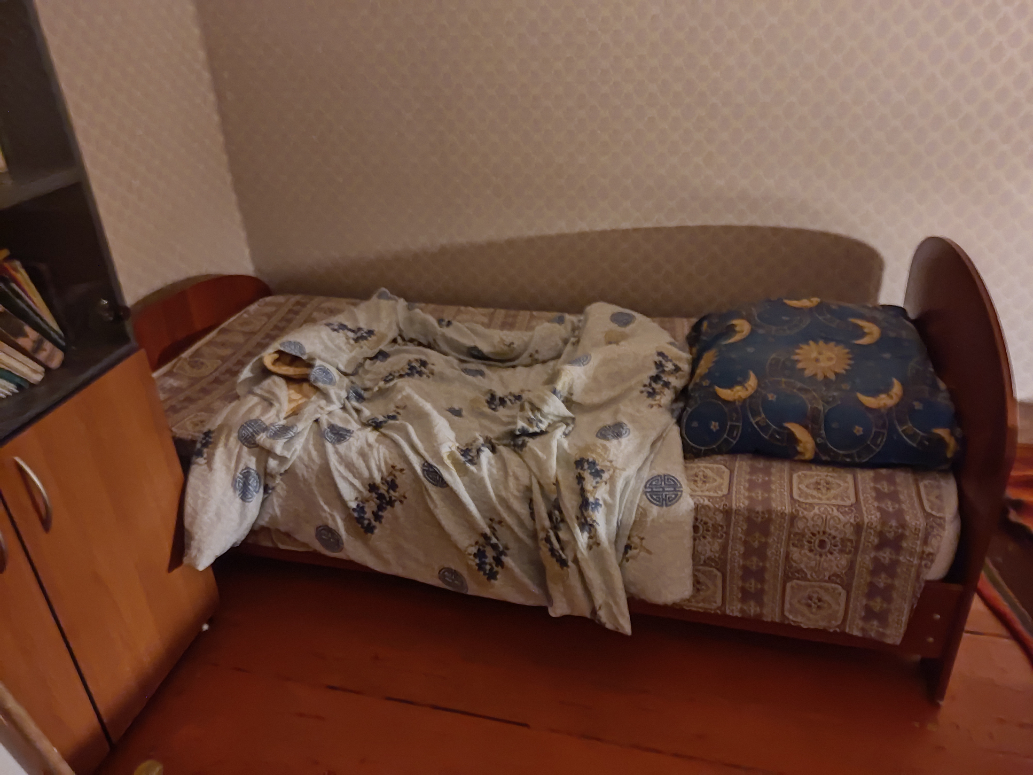 Я чихнул и разъебал кровать. Говно кровать из опилок. Щас зараза ходит и я как в некотором смысле доктор, больше всех на ногах. Гульку спас от кровопотери разорванных мышц. Буду по-японски спать