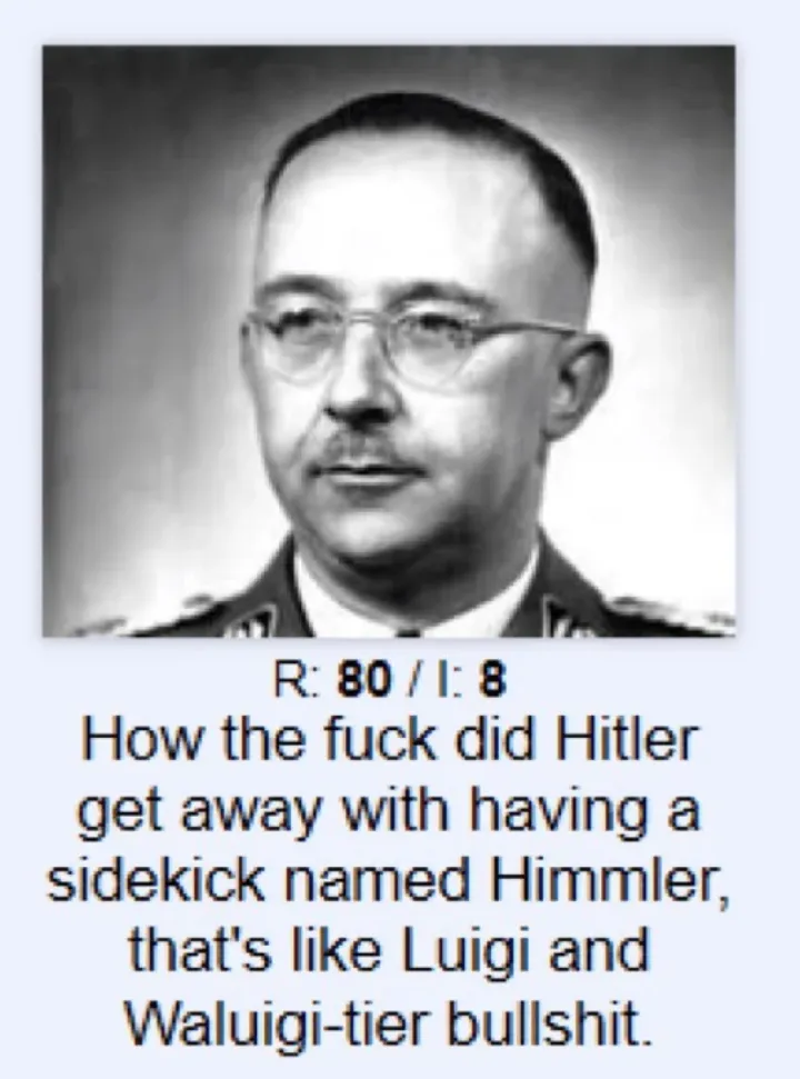 >>4068335 Помню смотрел фильм фашиков о достижениях гитлы вроде Такая хуета. Даже учитывая что раньше не было всяких интренетов, я уверен что деды спали пока смотрели это говно Поезд который тупа идет я уверен куда интересней был для дедов