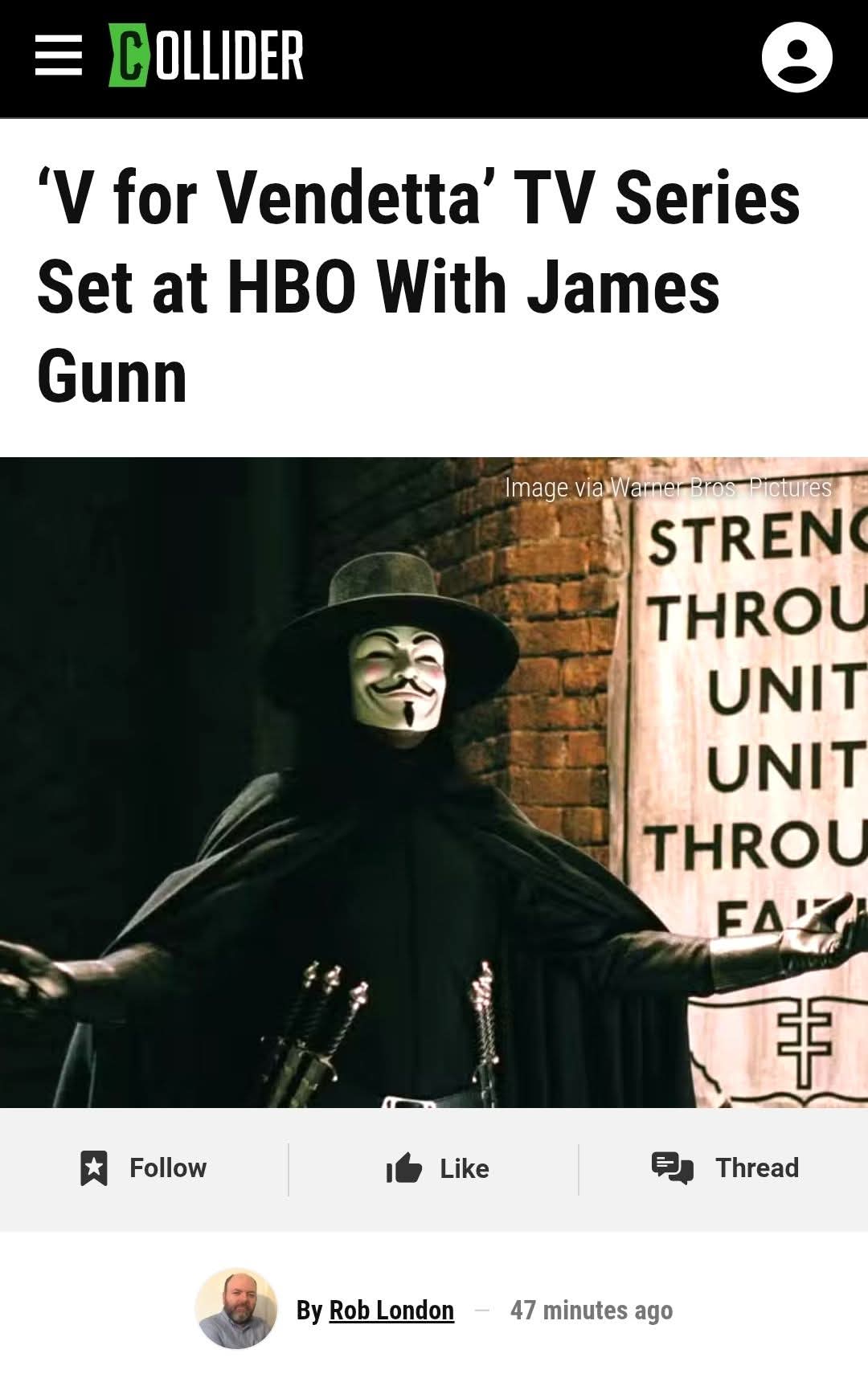 Сериальная адаптация «V — значит Вендетта» в работе у HBO!