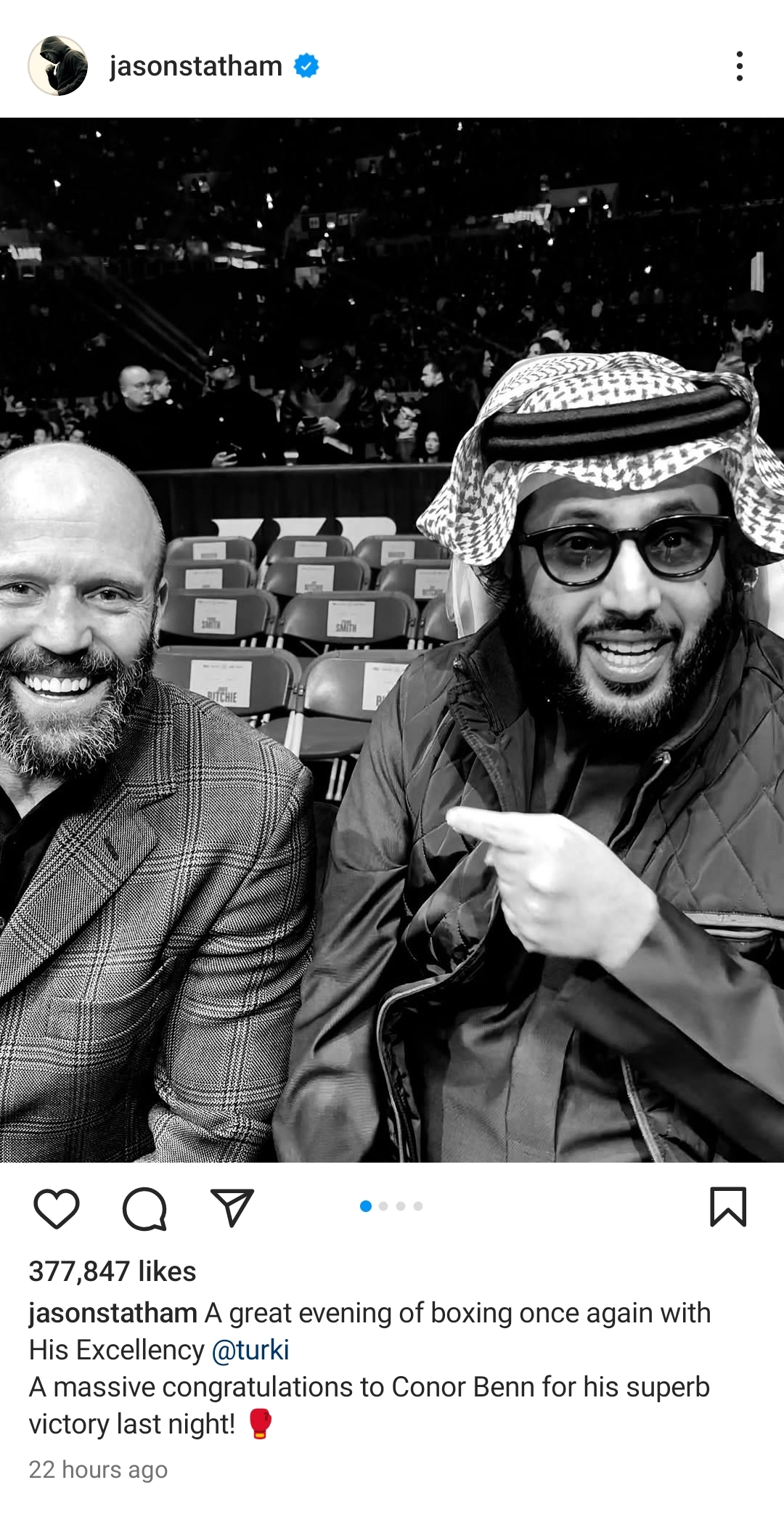 И почему мне кажется, что рано или поздно Стетхему аукнется, что он постоянно тусит с какими-то мутными богатыми саудитами? Уже не в первый раз такое, и причем с обязательным постом в его акке, а не втихую. Вот и сейчас, сьебался со съёмок Пчеловода 2 на пару дней, чтобы приехать на очередной боксерский мордобой, организованный этим арабом. Похоже, ему тупо платят за то, чтобы он светил ебалом с ними и публично называл их друзьями. Но это че-то выглядит скользкой дорожкой, примерно как когда Ван Дамм приезжал на день рождения Кадырова.
