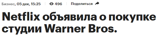 >По информации издания Deadline, Netflix добился своего — сделал самое выгодное предложение компании Warner Bros. Discovery и в ближайшее время финализирует сделку по приобретению их кинематографического и стримингового бизнеса. >Теперь студия Warner Bros. и сервис HBO окажутся под новым менеджментом. Представители Netflix ранее уверяли, что продолжат выпускать в кинотеатрах проекты киностудии. Но, в отличие от Paramount, не обещали, что Джеймс Ганн и Питер Сафран сохранят контроль над киновселенной DC.