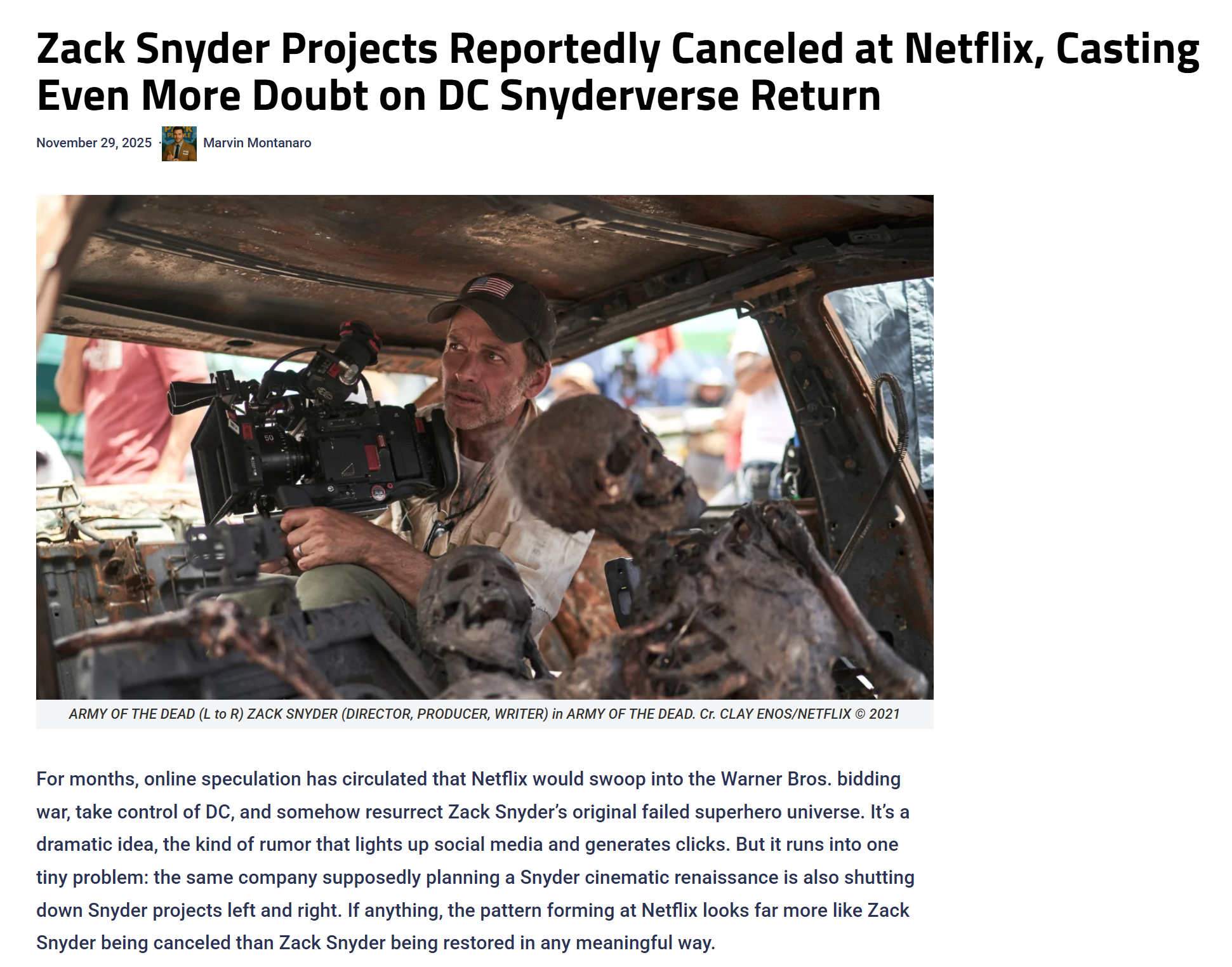 Несмотря на надежду фанатов на возвращение киновселенной DC Зака Снайдера, стриминговый сервис отдаляется от режиссера. Даже новый фильм он снимает без участия Netflix.