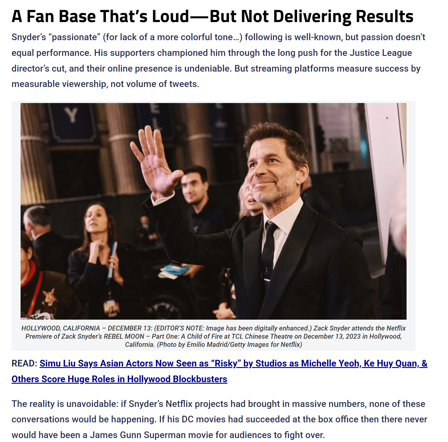 До этого другие франшизы Снайдера на платформе были отменены. В прошлом году стало известно о закрытии киновселенной «Армия мертвецов». А после двух частей «Мятежной луны» разговоры о третьей, хотя сам режиссер еще надеется на продолжение.