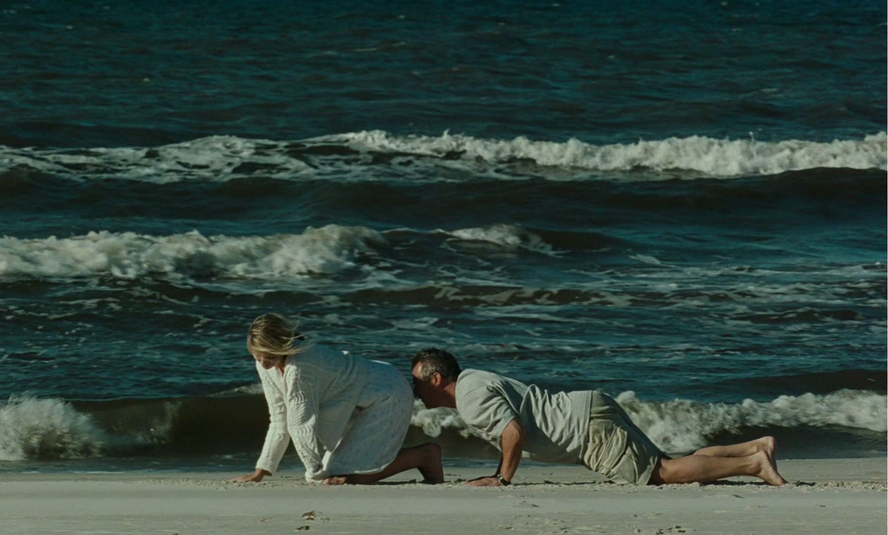 Это опыт, от которого нет спасения. Ты покачиваешься в такт солнцу, но песок хлещет тебя. Он обжигает. Он разрывает тебя на части. По мере того, как фильм медленно продвигается от одного пустынного участка к другому, зрителю становится ясно, что на другой стороне нет рая. Путь ведет только от одного ада к другому, бесконечный и безразличный. Спасение — это миф. Это путешествие к смерти; путь неизбежного. Изнурительное испытание, сопровождаемое болезненными ритмами, и свидетельство истины, что мир заканчивается «не взрывом, а тихим стоном».