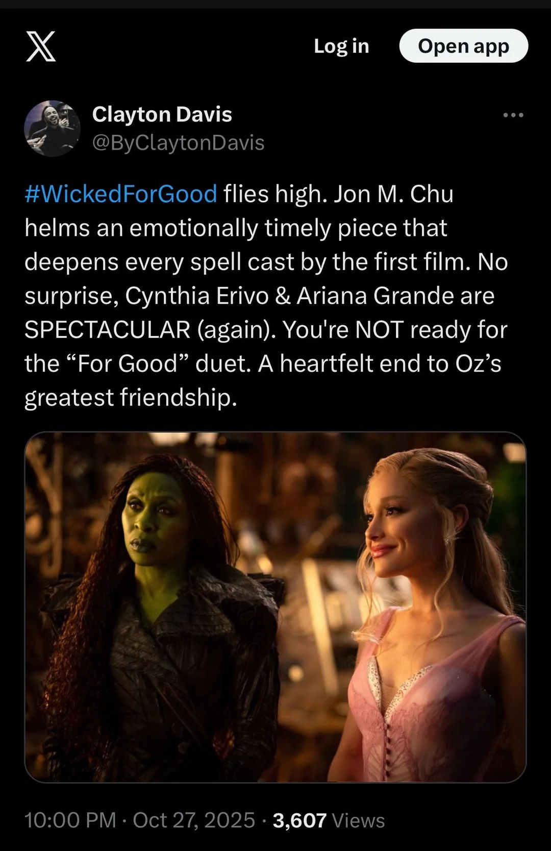 Трейлер величайшего киномюзикла в истории кинематографа "Злая: Навсегда" ("Wicked: For Good") посмотрели 113 миллионов раз за первые 24 часа после публикации! Что? Да!