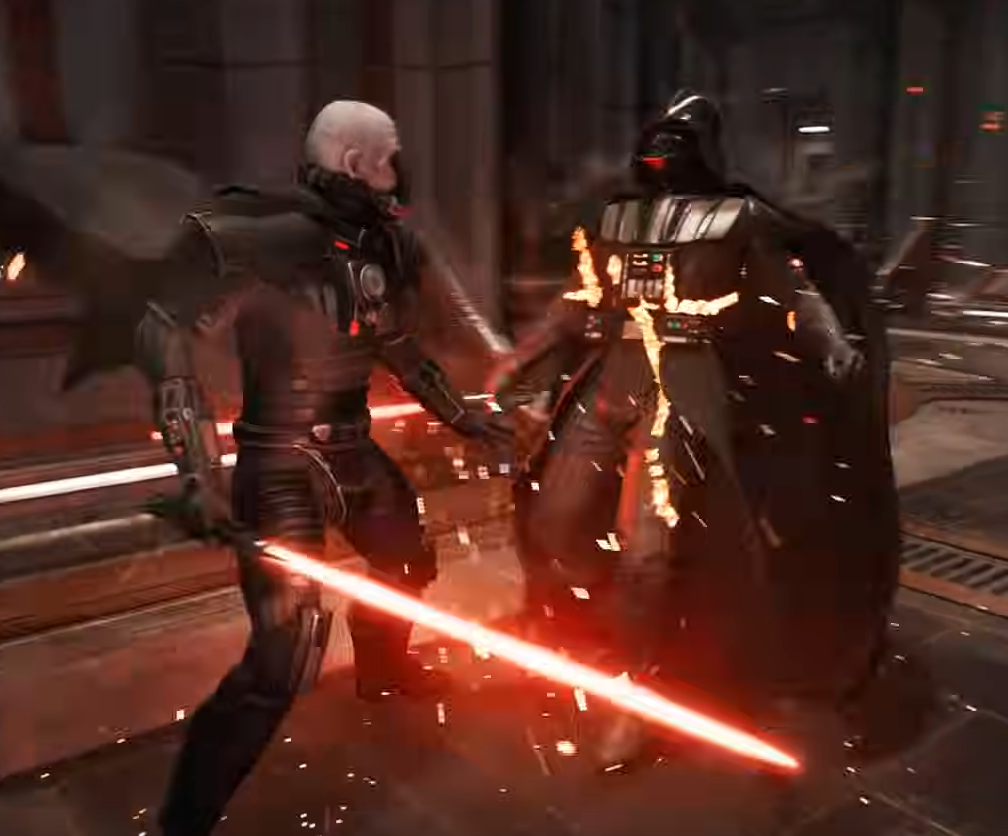 Лор-вайс у Вейдера вообще никаких шансов. Стиль чем-то похож и тоже на силу рассчитан, но Малгас здоровее даже роботизированного Вейдера, плюс намного ловчее, плюс он силовому стилю изначально обучался. А не как Вейдер, который изначально щуплый мальчуган, который вынужденно к нему пришел из-за здорового неповоротливого костюма.