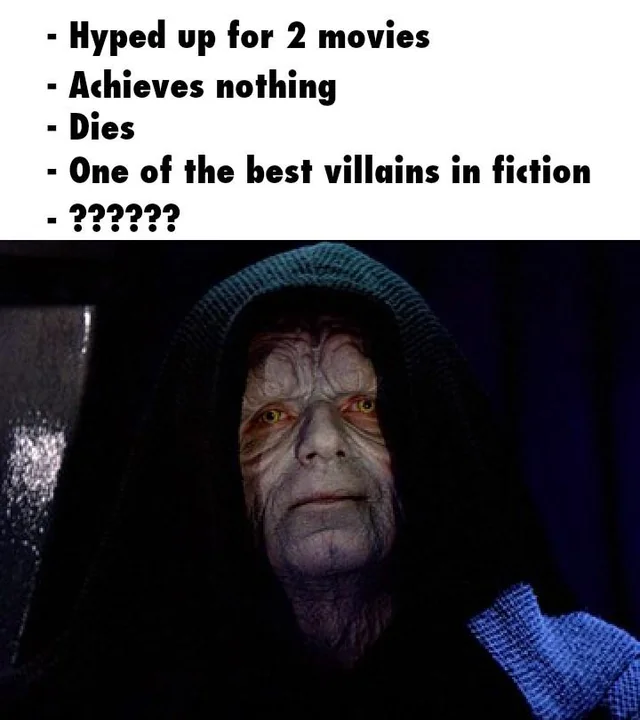 А Дисней опорочил его фигуру, превратив в шизика, который приказал уничтожить свою же Империю при том что готовился воскреснуть.