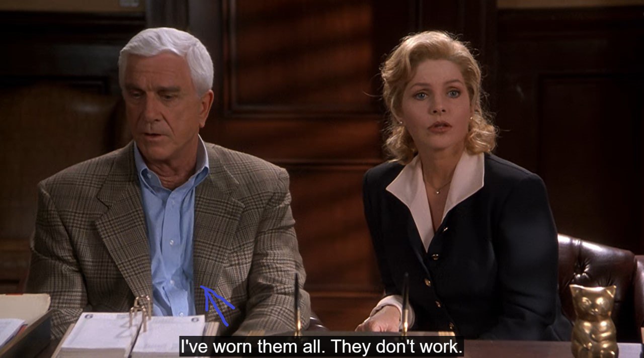 Если же речь о шутках над меньшинствами, то, во-первых, вопрос, а зачем они вам вообще нужны? А во-вторых, при пересмотре оригинальной трилогии я поразился, насколько во всяком случае два первых фильма в этом плане умеренные. Почти все знаменитые «неполиткорректные» шутки (про слепого на оргии, про карлика у писсуара или «тюрьма меняет людей, раньше я был белым») появились только в третьем фильме, да и те не выглядят какими-то явно оскорбительными или злыми. Единственное большое исключение – дико трансфобный эпизод с Анной Николь Смит, но опять же – трансфобия и в 2025-м снова мейнстрим. В целом «Голый пистолет» – это всё-таки не «Очень страшное кино», и некую интеллигентность он по большей части сохранял, почему в итоге и состарился гораздо лучше.