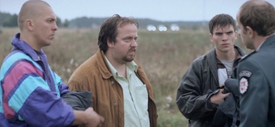 Другое дело, что в приведённых сценах всё строится на контрасте, где он производит впечатление психопата, а окружающие - нормальные люди, которые с него испуганно охуевают. В Пистолетах же мир выстроен иначе.
