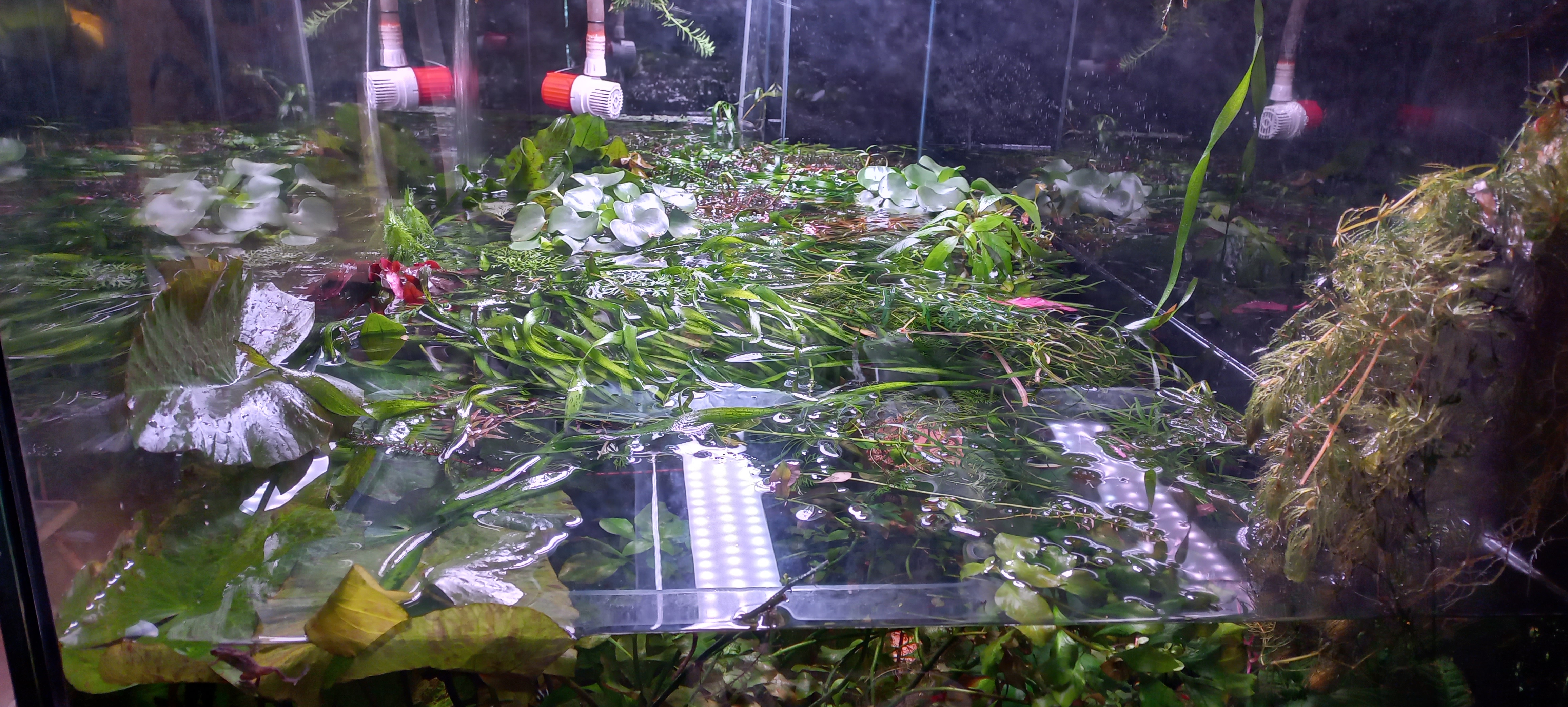 >>226113 >Повыше поднять прожектор над банкой. Так в этом то и одна из главных проблем со светом, вода его ебейше сильно поглощает и если поднимать свет выше то на дне вообще мрак получается. У меня банка глубокая так что пересвет у меня хрен сделаешь, наоборот даже 100вт маловато скорее было. Удобрения и тд это то понятно тут именно просто замена света сразу заставила растючку расти при всем остальном неизменном.